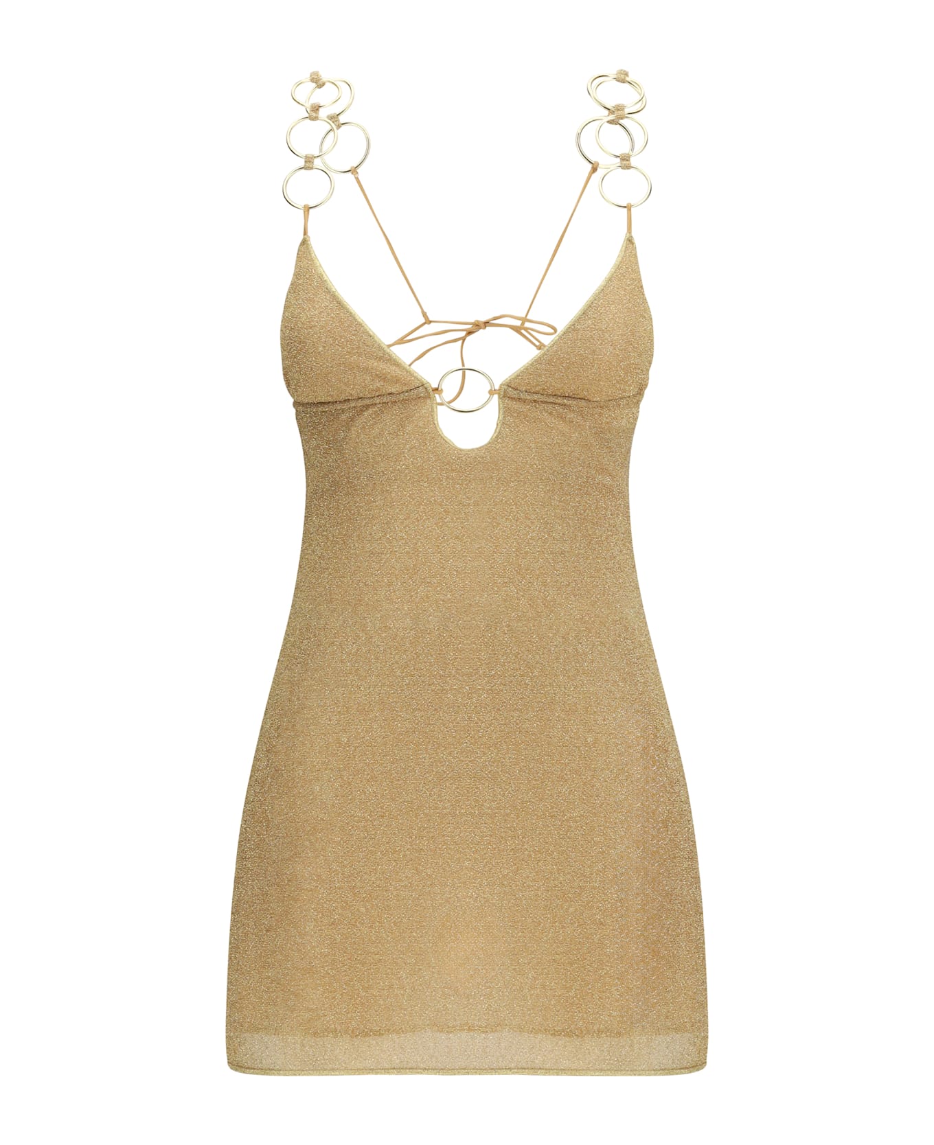 The lumière ring mini dress by oséree is a short dress with a luminous and sophisticated allure. it features jewel-embellished straps that add sparkle and femininity, while a central jewel detail enhances the design with a precious and eye-catching accent. the mini silhouette highlights the figure, making this dress ideal for evening occasions and special events.