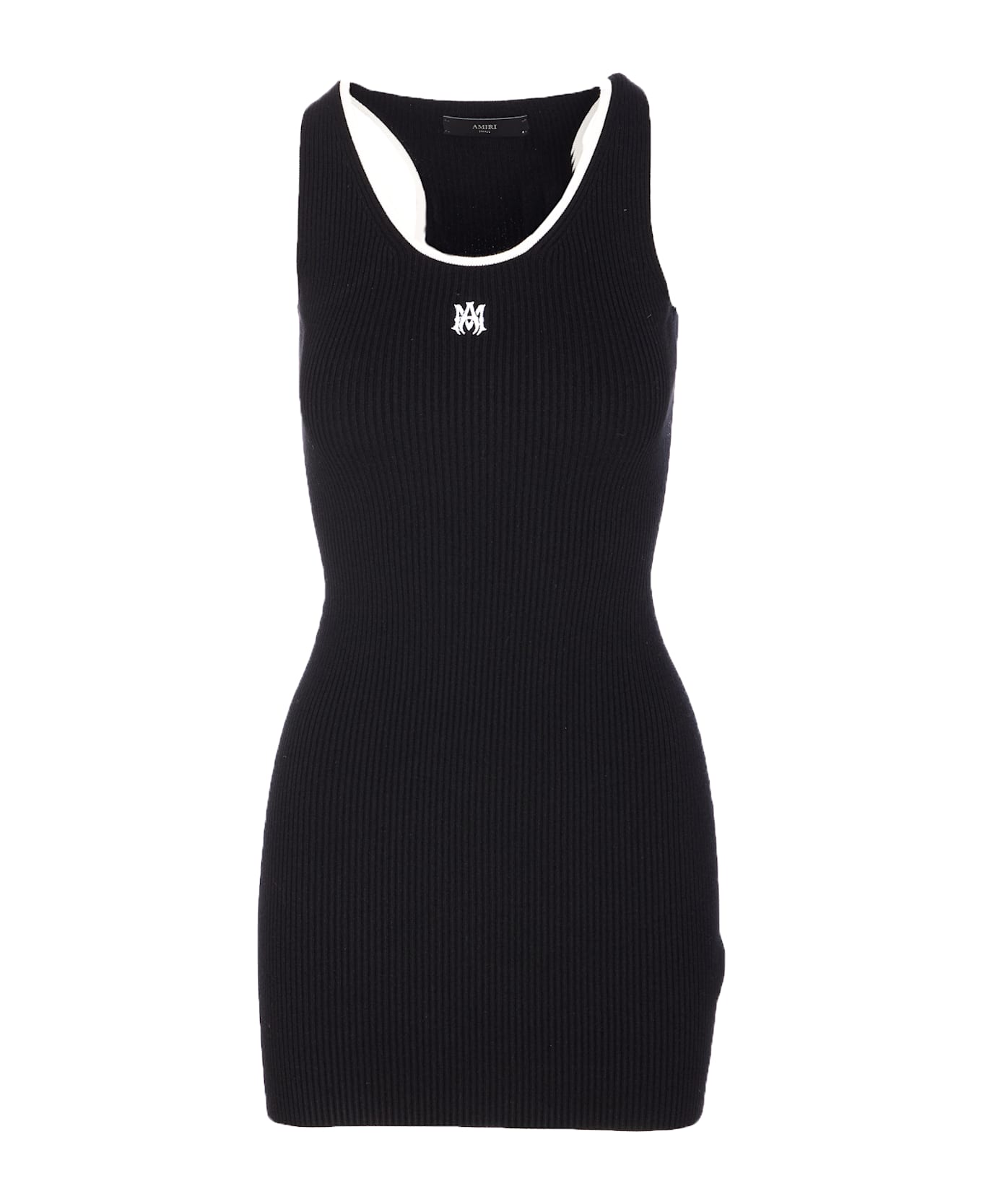Amiri black MA mini dress, sleeveless, embroidered MA logo on the front, sleeveless