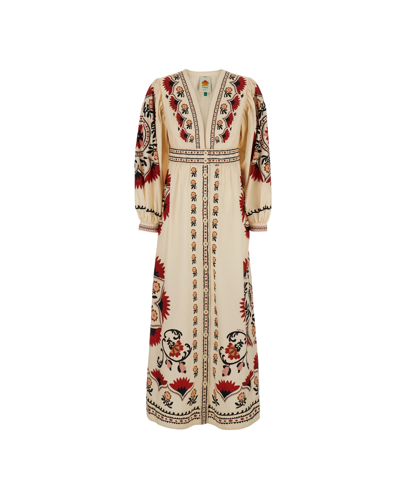 'mandala' Multicolor Long Dress With V Neck And All-over Floral Print In Cotton Woman