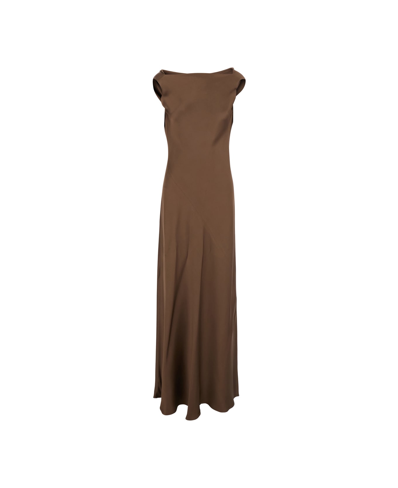 'mara' Brown Long Dress With Draped Neckline In Acetate Blend Woman