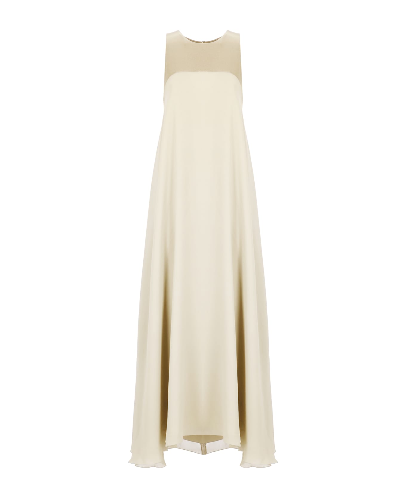 - Beige Antonelli Firenze silk dress for woman - Crewneck - Rear zip and button fastening - Sleeveless - Bare back