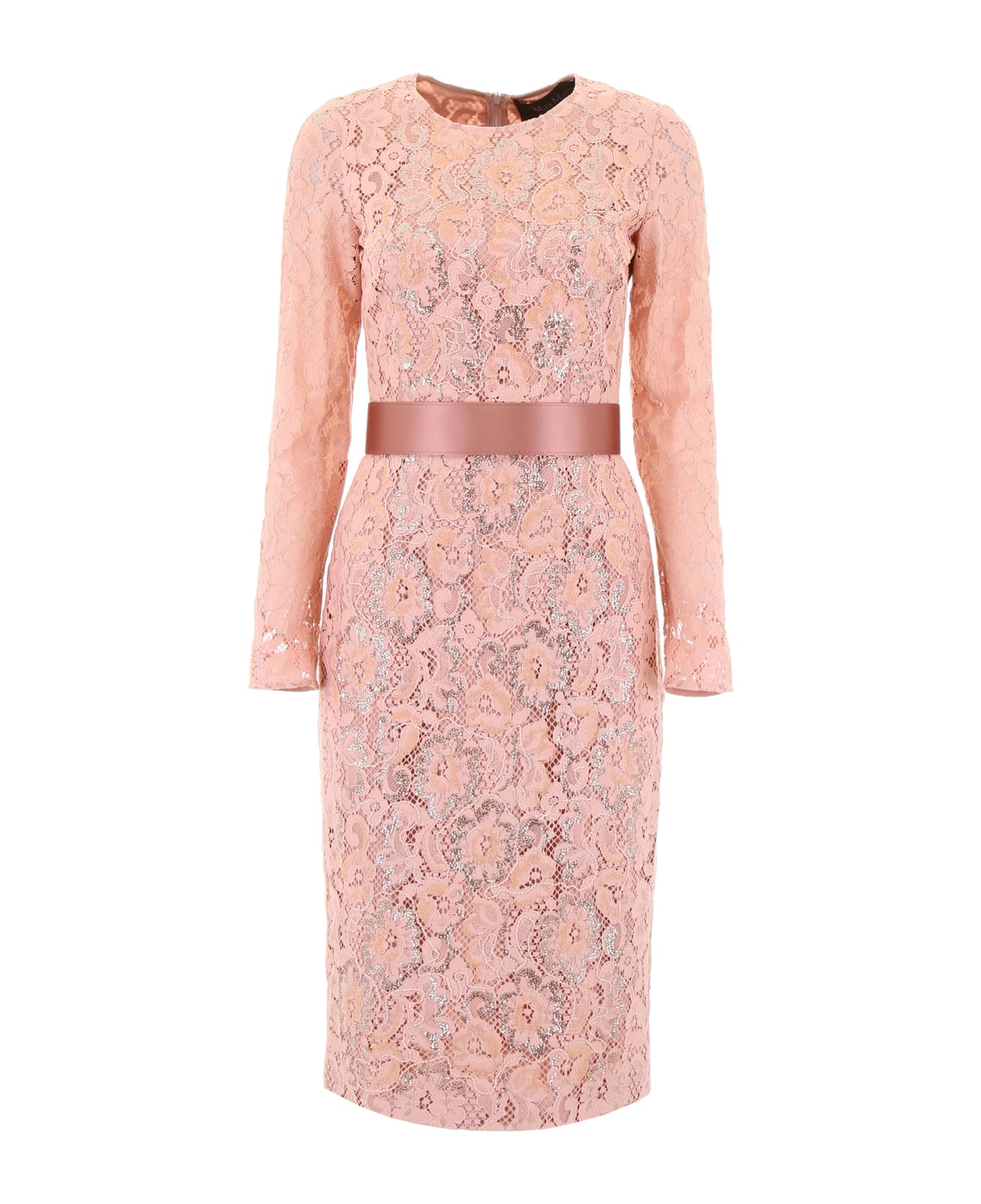 Max Mara floral lace dress with tonal micro sequins embroidery on the front. Concealed back zip closure, central back vent. Satin waist belt, crepe lining. Model height is 177 cm and she is wearing a size IT 40.