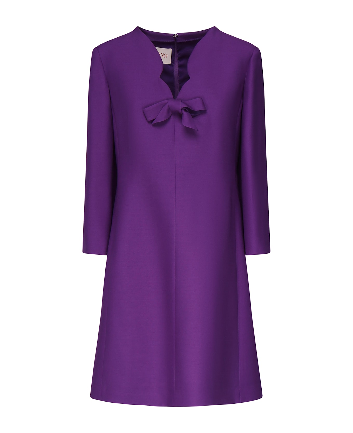 -Hidden back closure with hook and zip -V-neck -The size shown in the photo is 42 IT -Made in Italy -Color: Purple