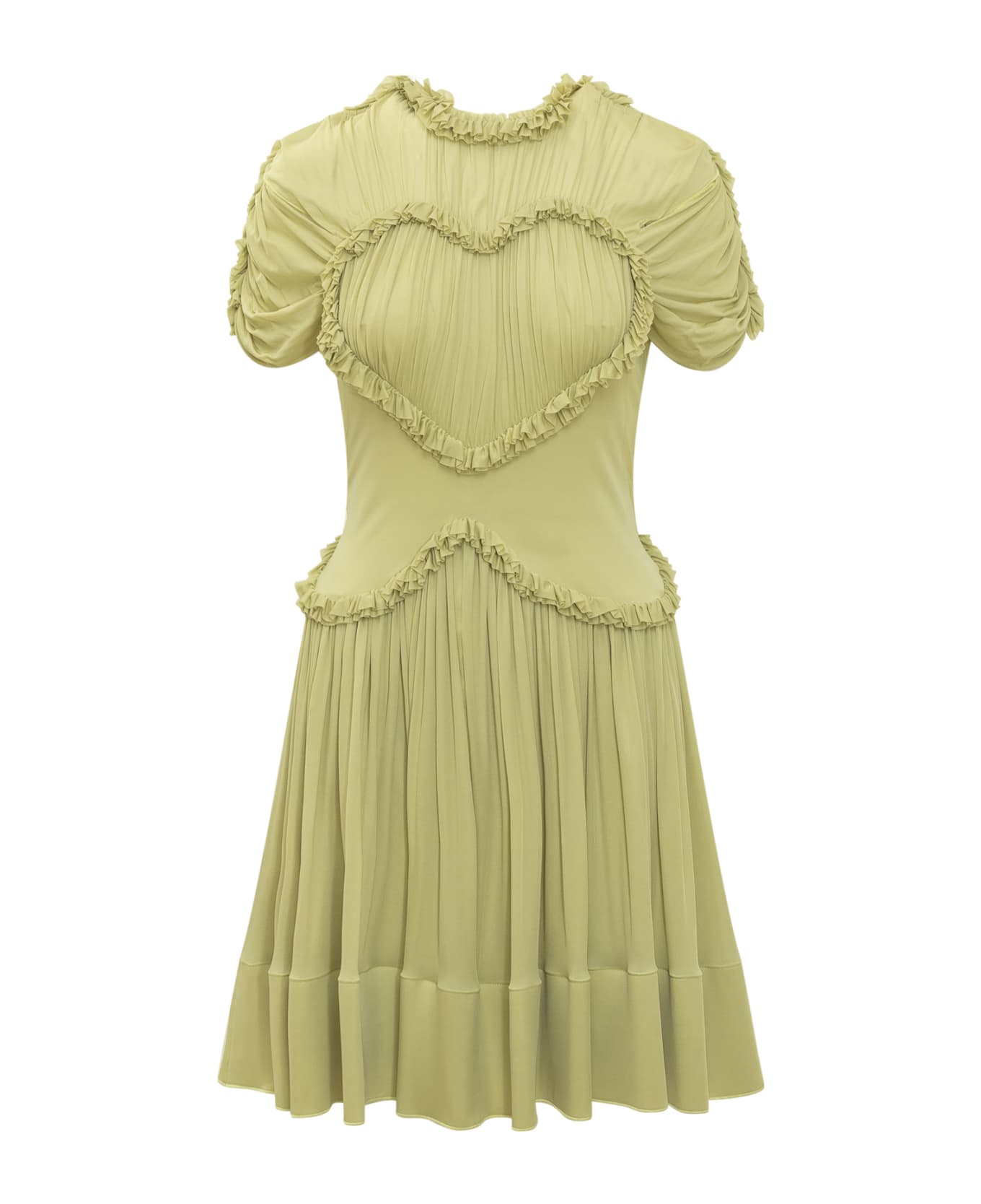 Midi dress. Short sleeves. Round neck. Zip closure on the back. Heart pattern on the front.