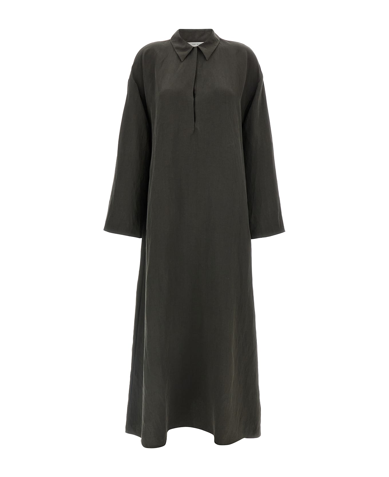 'Millen' long dress in silk and linen, tunic model, front hidden hook closure, long sleeves with dropped shoulders, pockets. Composition: 52% silk, 48% linen