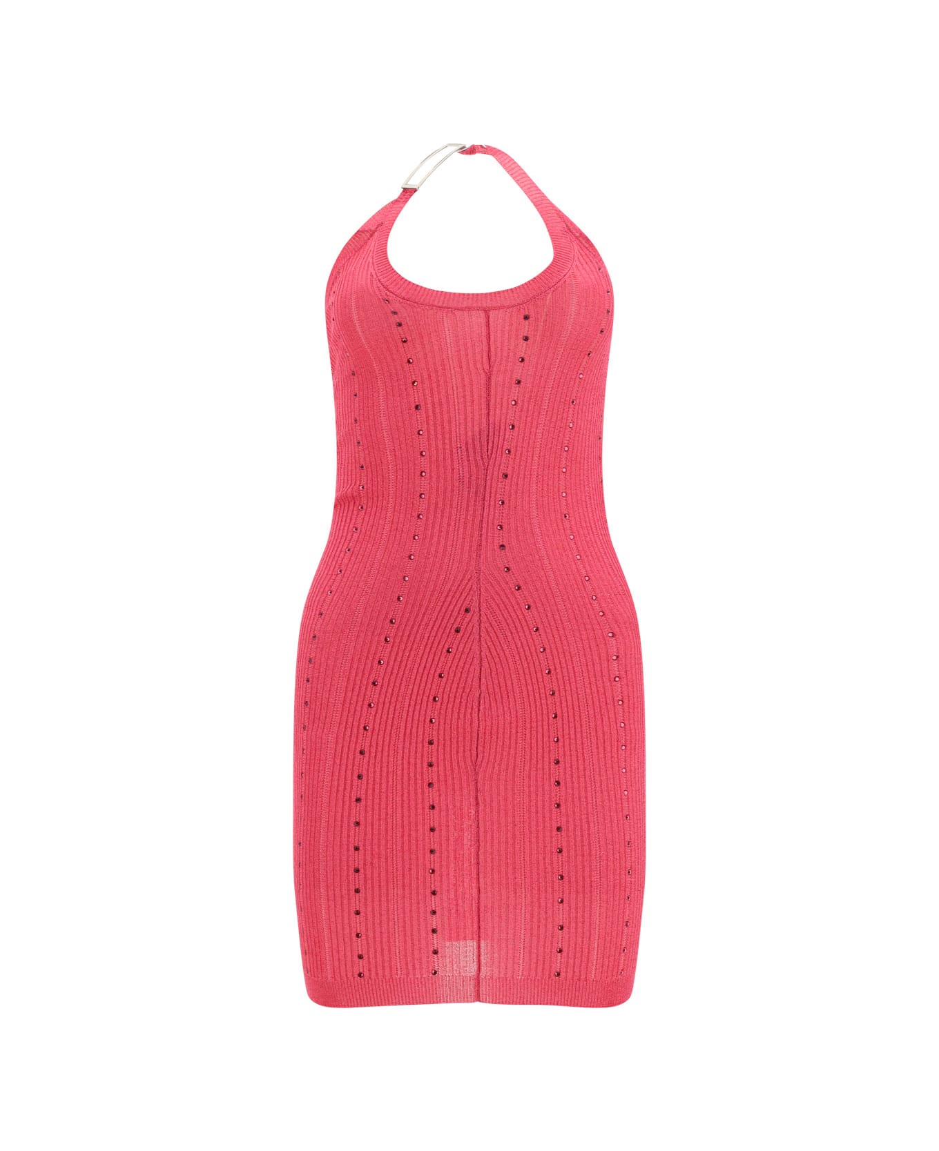 Mini dress by alessandra rich, alterneck with metallic detail, ribbed stretch fabric, monochrome pattern with shiny details.