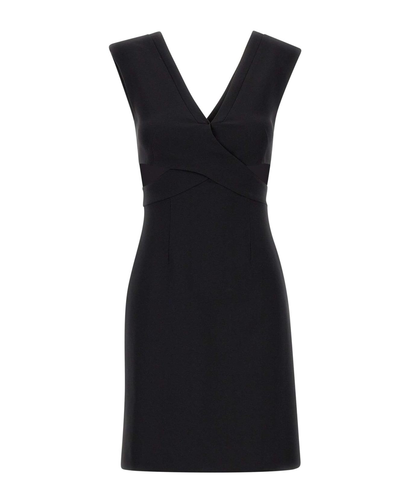 Genny minidress, black, very soft to touch fabric, sleeveless, front and back V-neck, padded shoulder straps, crisscross bodice, cut-out details on sides, snug fit, back zip fastening. Dry clean in a specialized centre. Made in Italy.