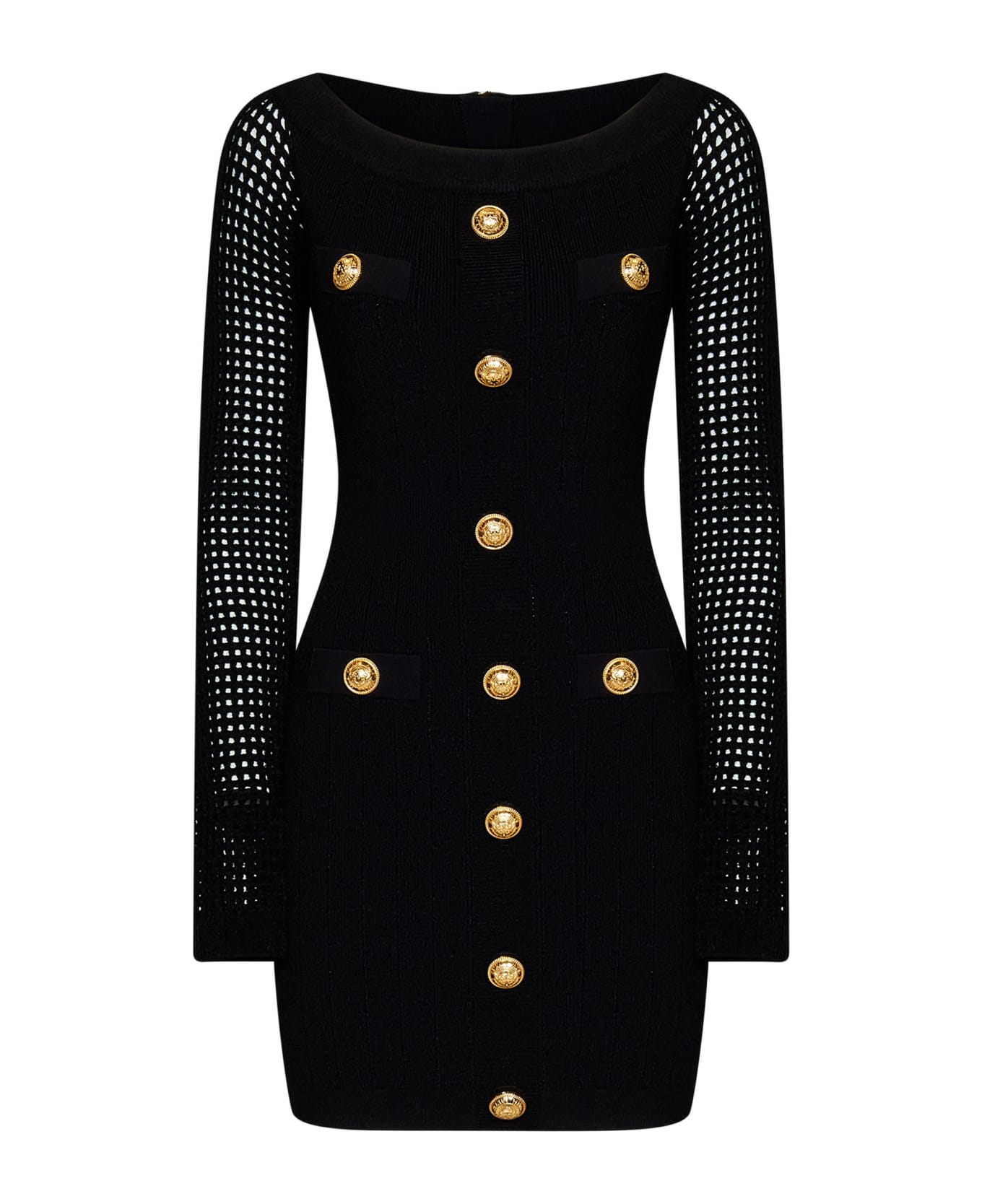 • Off-the-shoulder; Long mesh knit sleeves
