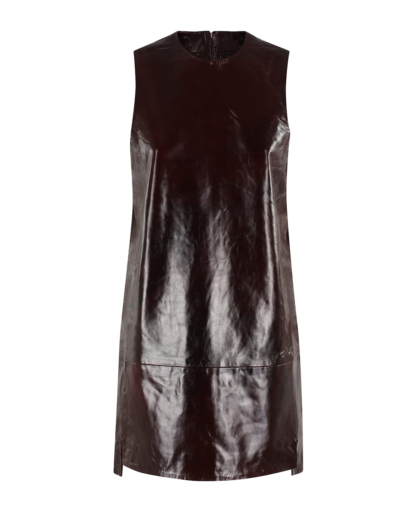 Leather mini dress - Remain - Burgundy color - Crew neck - Mini length - Back zipper closure - Regular fit