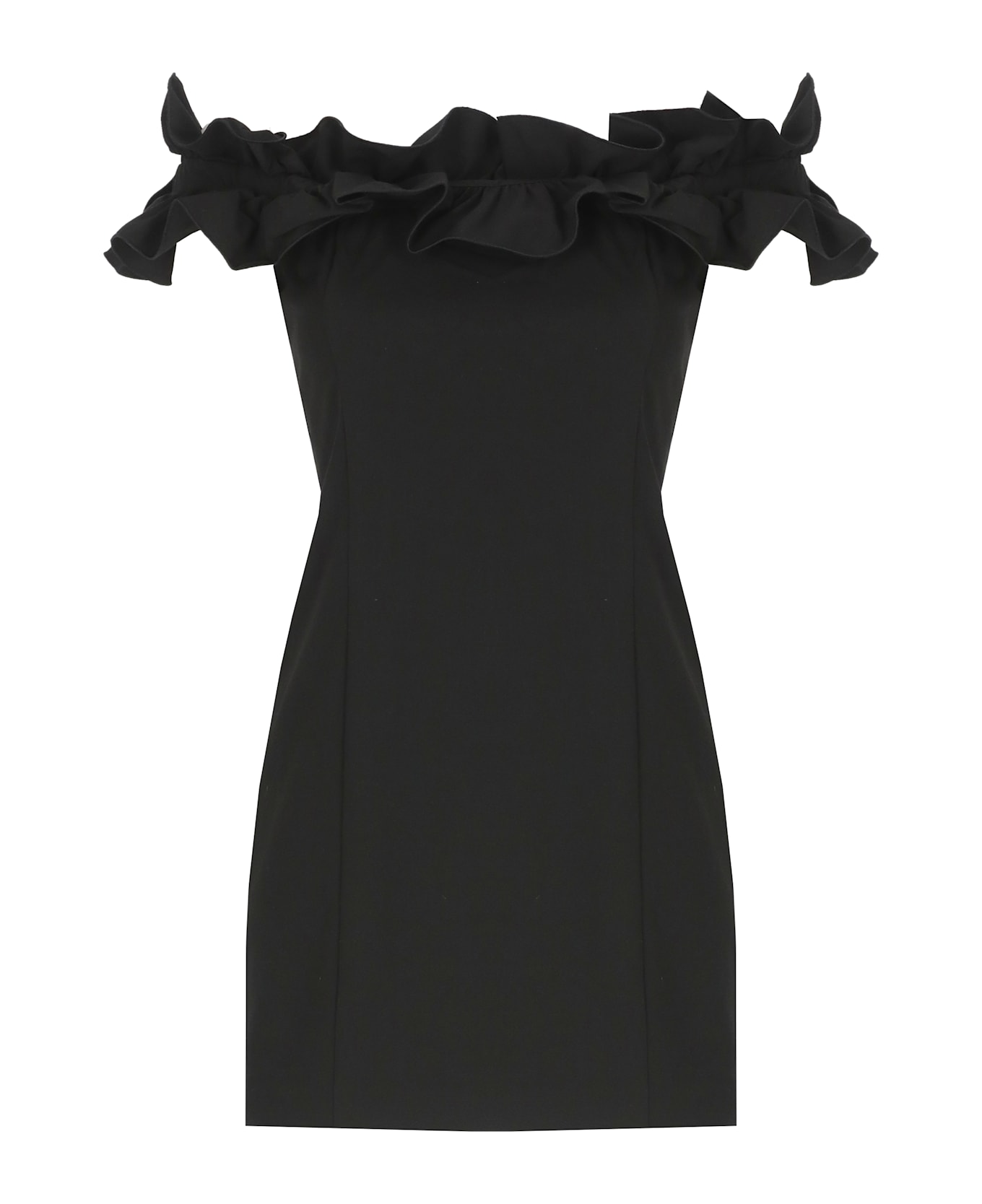 - Black Rotate dress for woman - Straight neck - Sleeveless - Rear zip and hook fastening - Draping detail at upper part