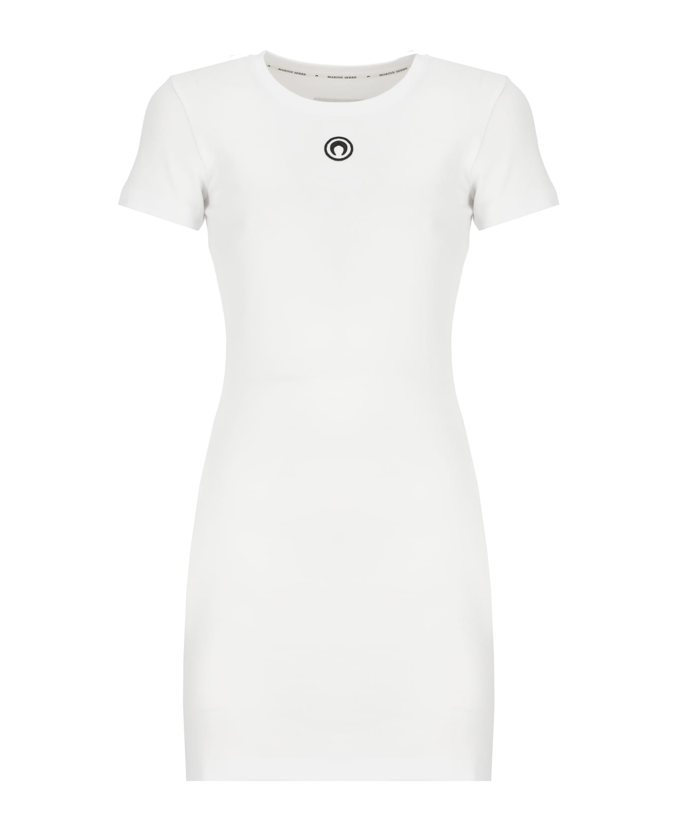 - White Marine Serre cotton dress for woman - Round neck - Short sleeves - Front contrasting color embroidered Moon logo