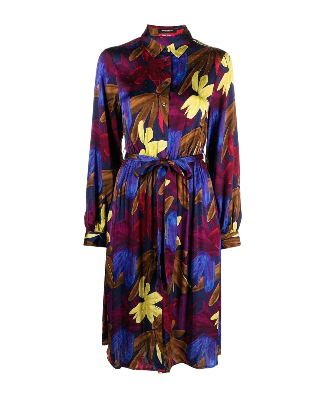 Multicolor dress women. Floral print, classic collar, button fastening, belted design, shirt sleeves, buttoned hems and knee length. viscose 100%