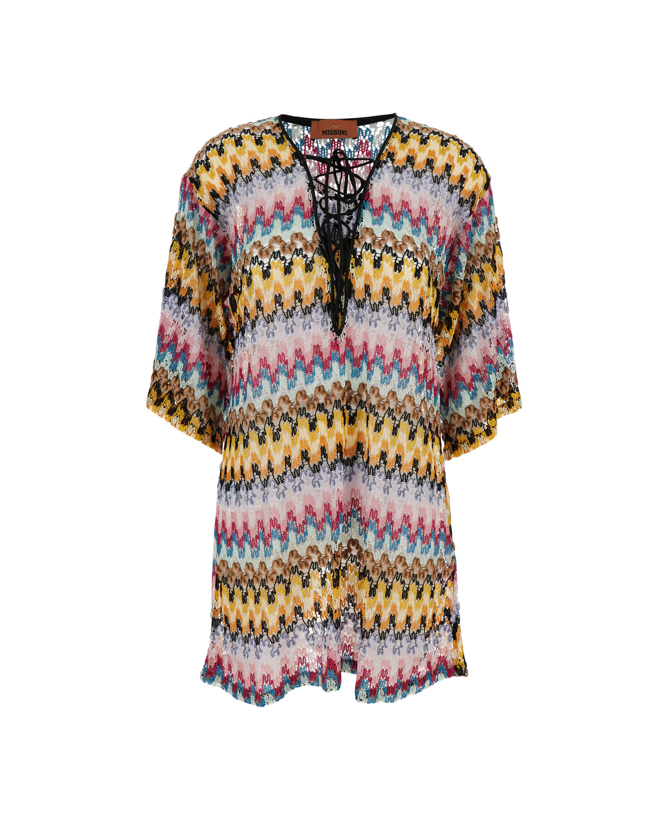 Multicolor Dress With Zig Zag Motif And Laces