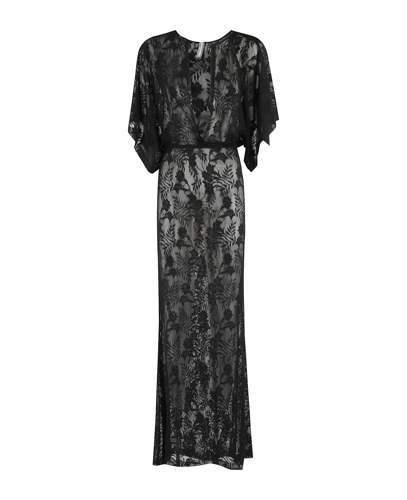 Obie dress - Norma Kamali - Black color - Mesh fabric and semi-transparent lace - Wide V-neck - Short kimono sleeve - Elasticized waistband - Regular fit