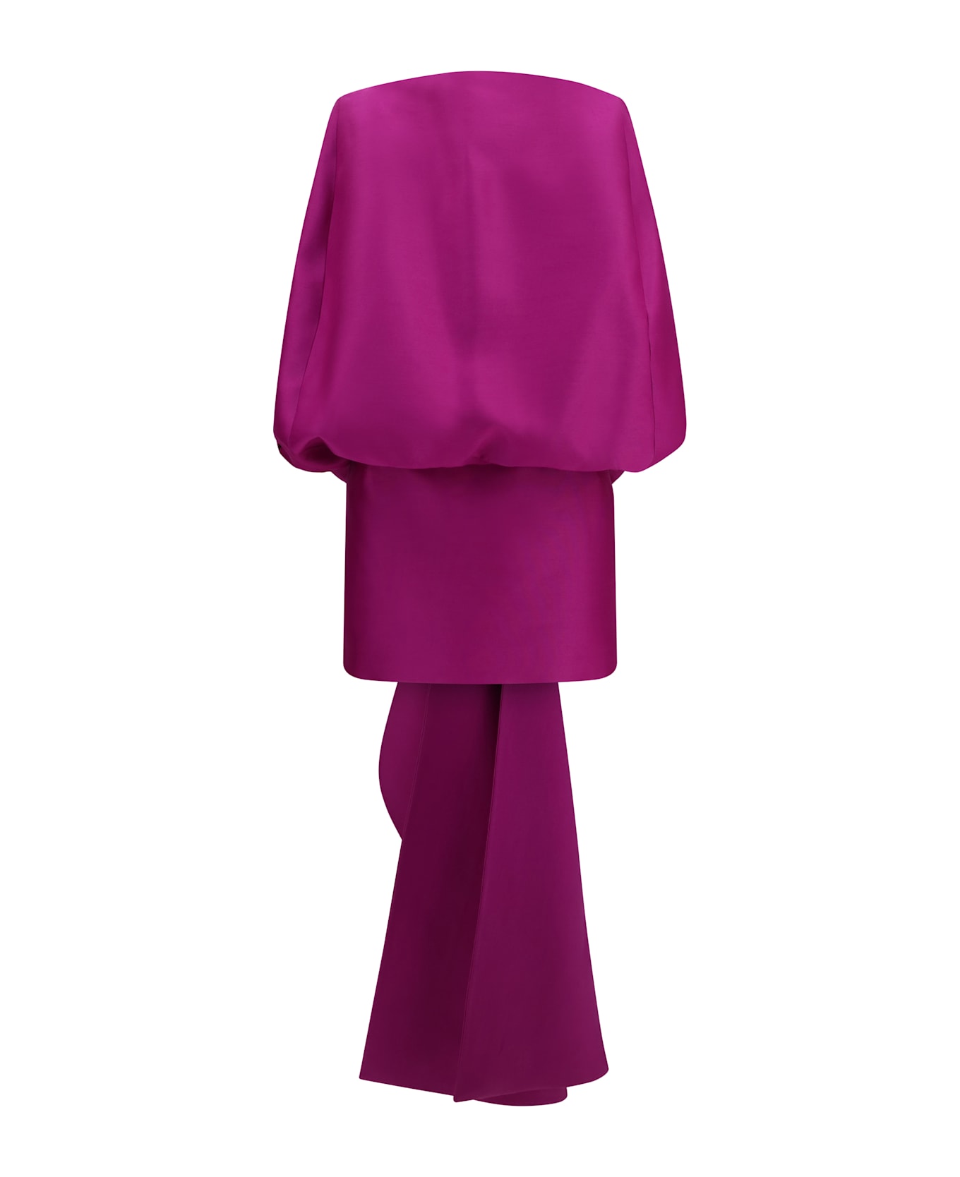 The off-shoulder mini dress by balenciaga embodies bold and contemporary elegance. crafted from vibrant purple wool and silk crepe, the design features an off-shoulder neckline that enhances the silhouette. the voluminous bodice adds structure and character, while the draped detail at the back brings movement and refinement, making this mini dress a sophisticated statement piece.