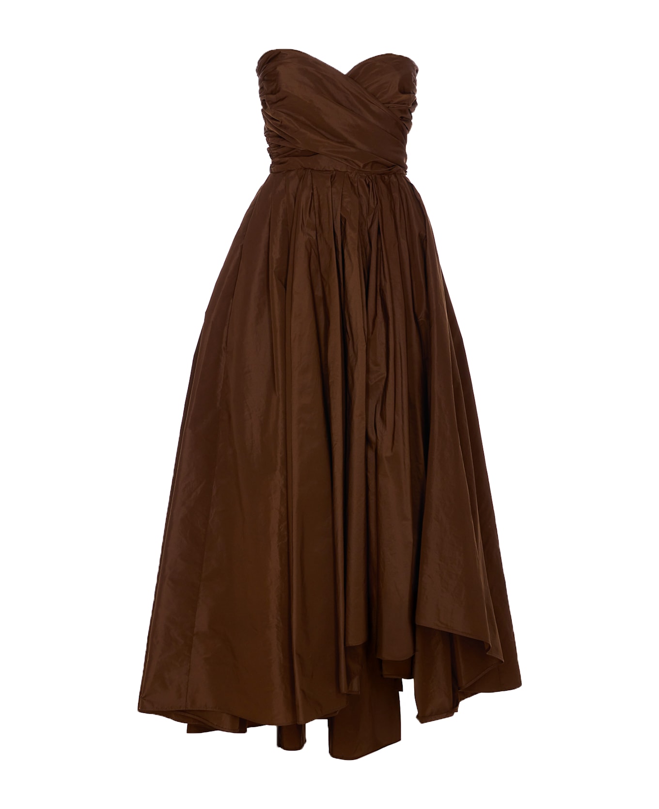 Pinko brown Pappagallo dress, zip and hook closure, wide model, asymmetrical at bottom, off shoulder Composition: 100% Polyester, 90% Polyester, 10% Elastane