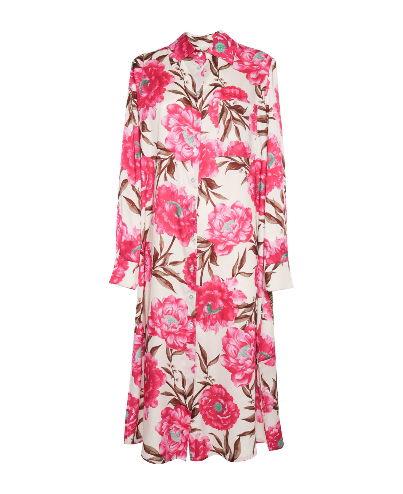 Shirt dress, peony print, animal printed detail with logo on the back, shirt collar, buttoned cuffs