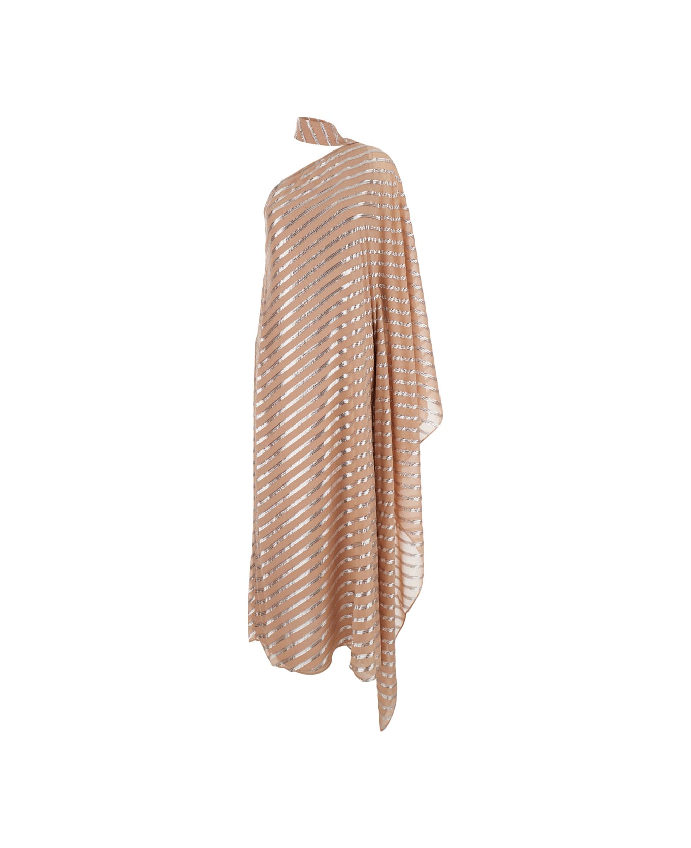 Long dress Pink One-shoulder Asymmetric neckline Scarf detail Straight hem All-over striped motif Silk blend Relaxed fit