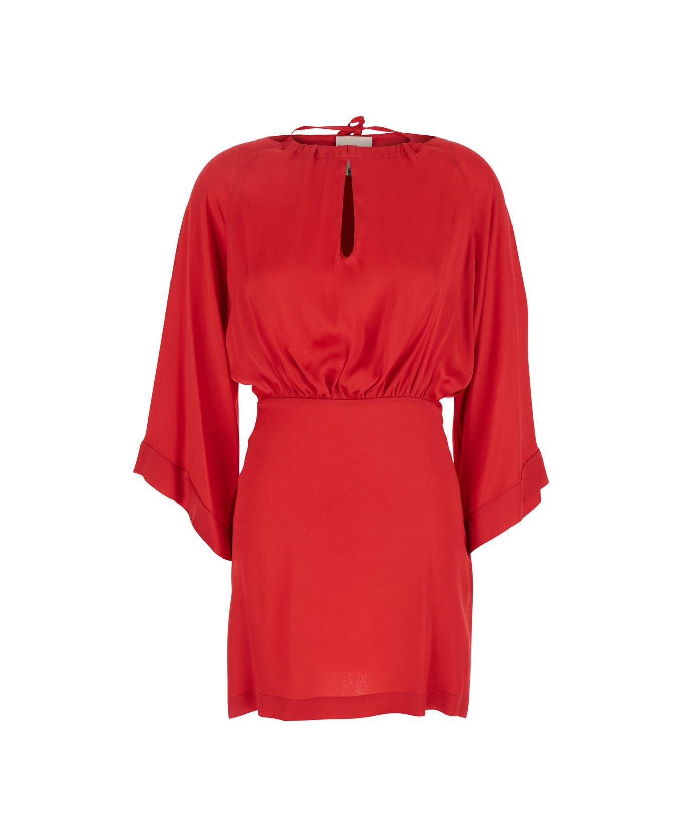 Red Dress With Teardrop Opening On The Front And Drawstring With Adjustable Lace In Satin Woman