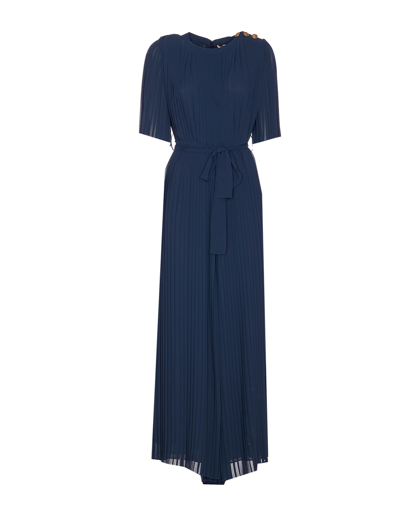 Twinset blue navy suit, zip closure on the back, belt closure, pleated model, short sleeves, lateral golden buttons Composition: 100% Polyester