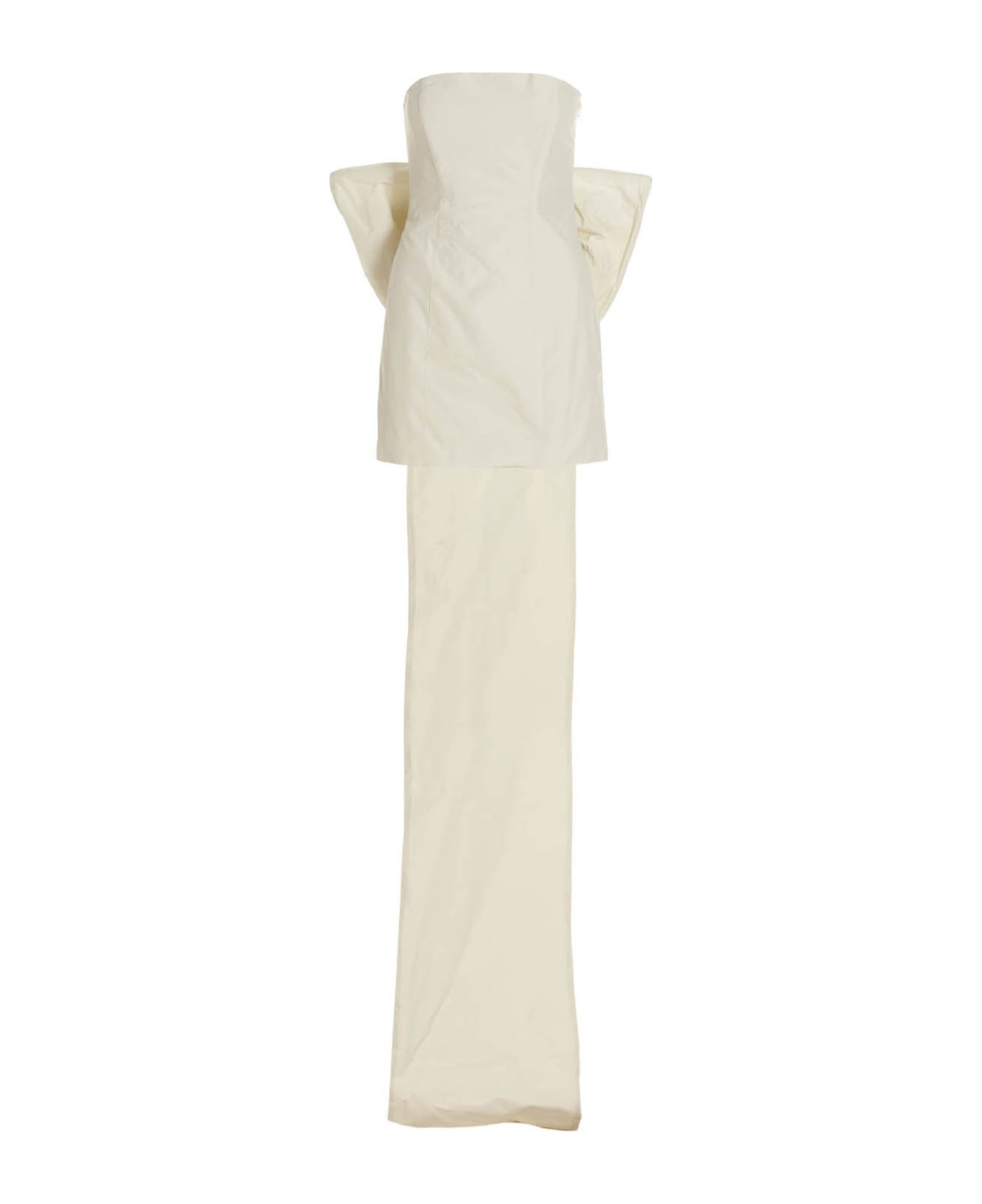 Plisse Taft Mini' taffeta dress with a maxi bow on the front, an off-the-shoulder style, a side zip closure and a removable train at the back.