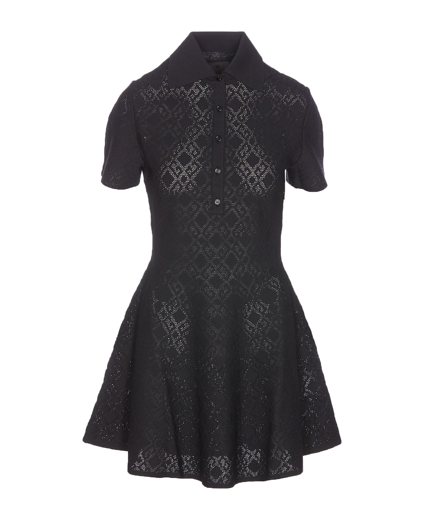 Givenchy black polo Monogram dress, regular collar, short sleeves, buttons closure, lateral zip closure, mini model Composition: 91% Viscose, 6% Polyamide, 3% Polyester