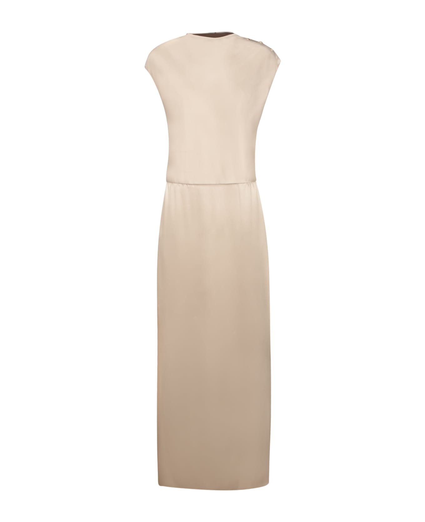 This Giorgio Armani long dress captures essential elegance with its clean design and delicate powder hue, perfect for formal events or elegant evenings.