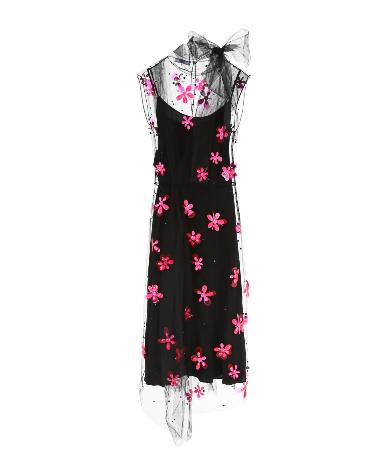 Prada tulle dress with all-over floral embroideries made of sequins and plexi studs. Removable silk crepe slip, side concealed closure. Model height is 177 cm and she is wearing a size IT 40. Composition: 100% seta