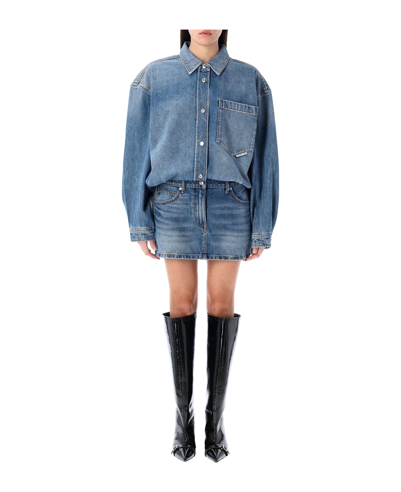 Cotton Blend Pre-styled Denim Shirtdress By Alexander Wang. Featuring: