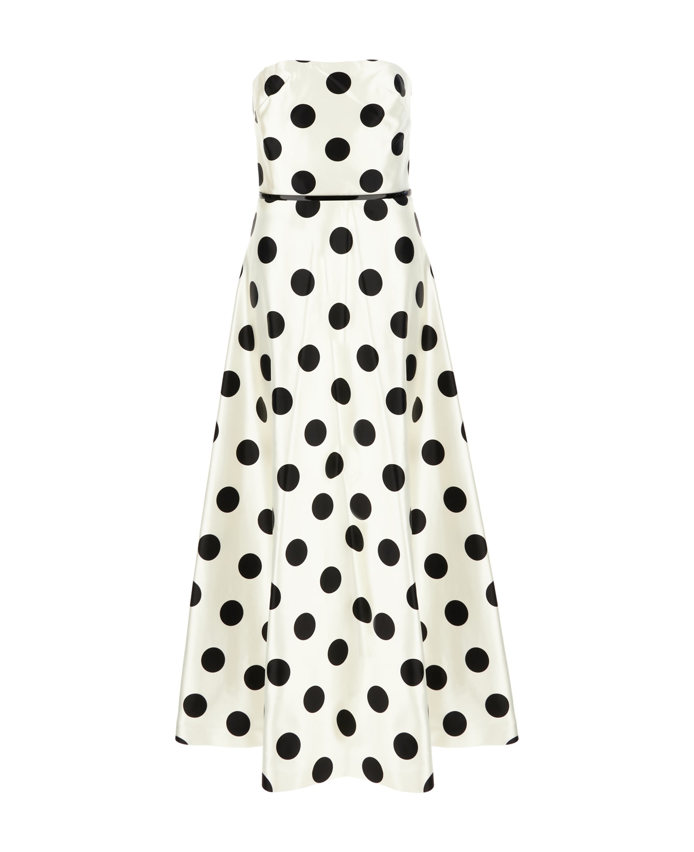 Long-cut dress realized in cotton and silk characterized by polka dots print on the entire surface enriched by detachable belt. -Strapless -Concealed zip closure on the side -Lined Composition: Exterior: 60% Cotton 40% Silk Lining: 100% Cotton