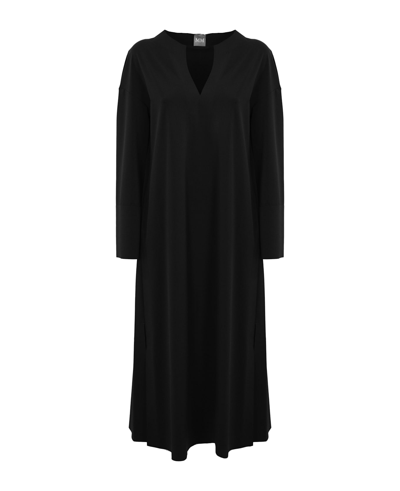 women's long dress: stretch technical jersey long sleeves cuffs with side slits round neck with v-neck flowing design regular fit composition: 87% polyamide, 13% elastane