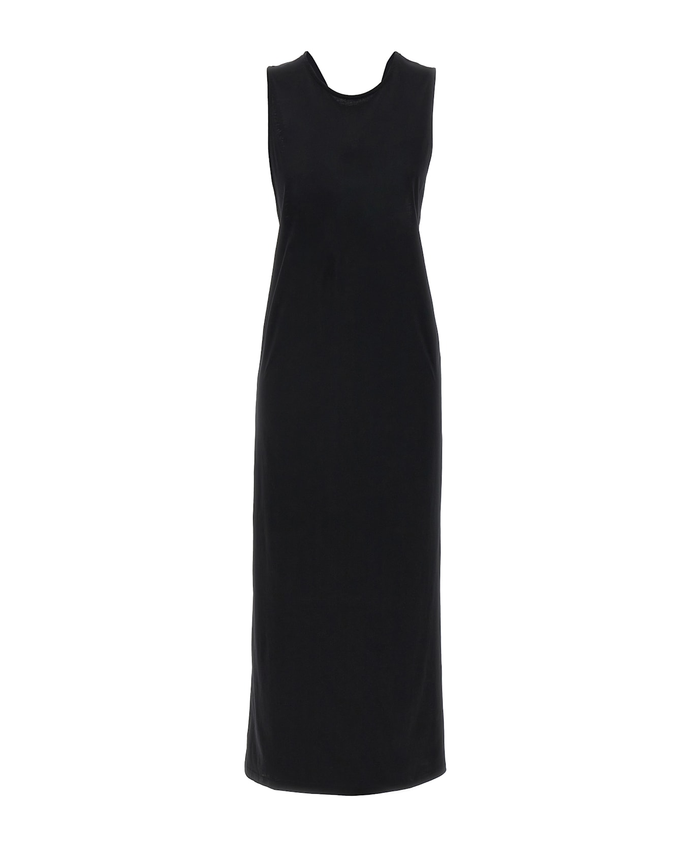 'Rayna' sleeveless cotton midi dress with round neckline, weave with back knot detail, side split.