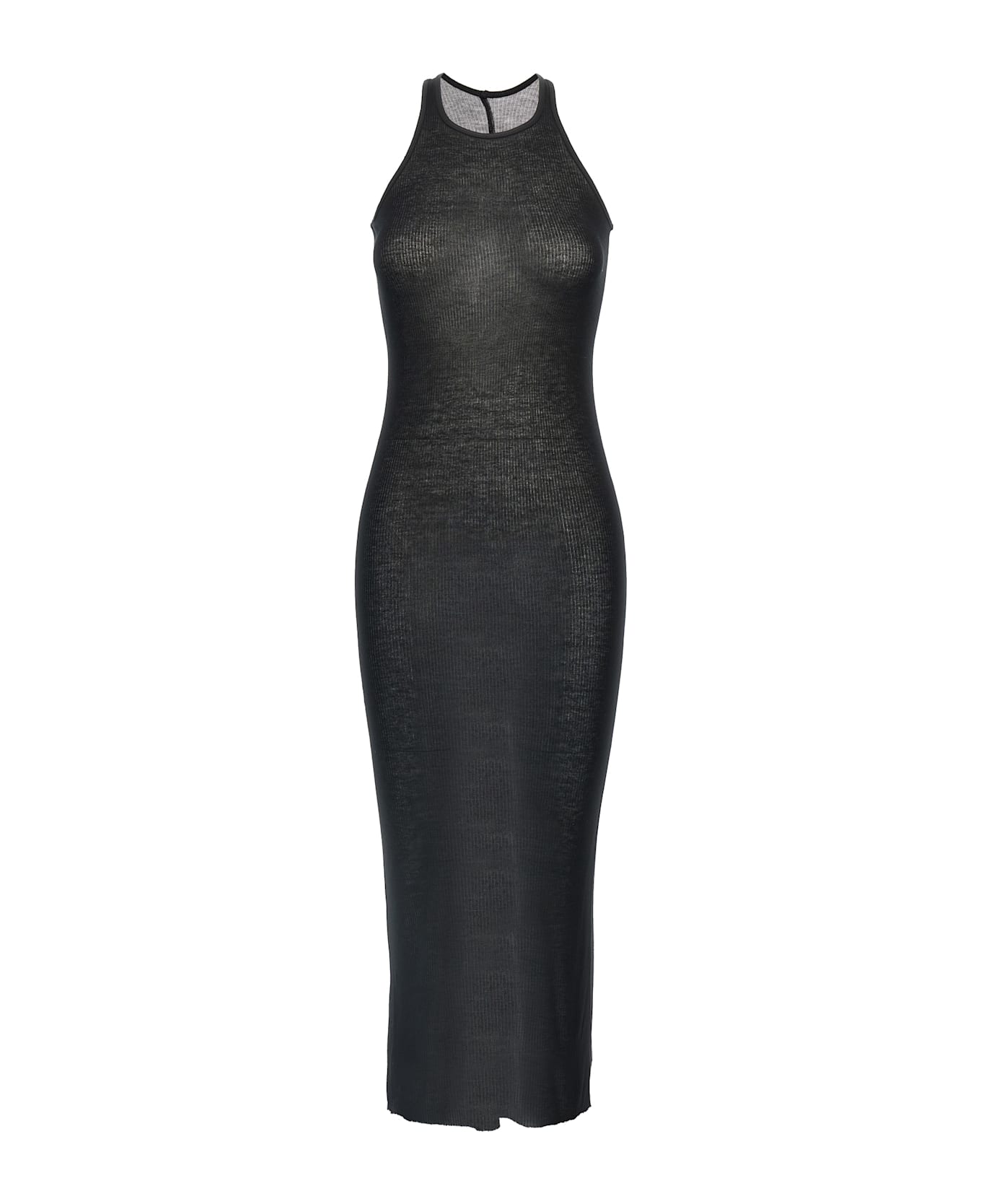 Ribbed viscose and silk blend dress, sleeveless, crew neck.