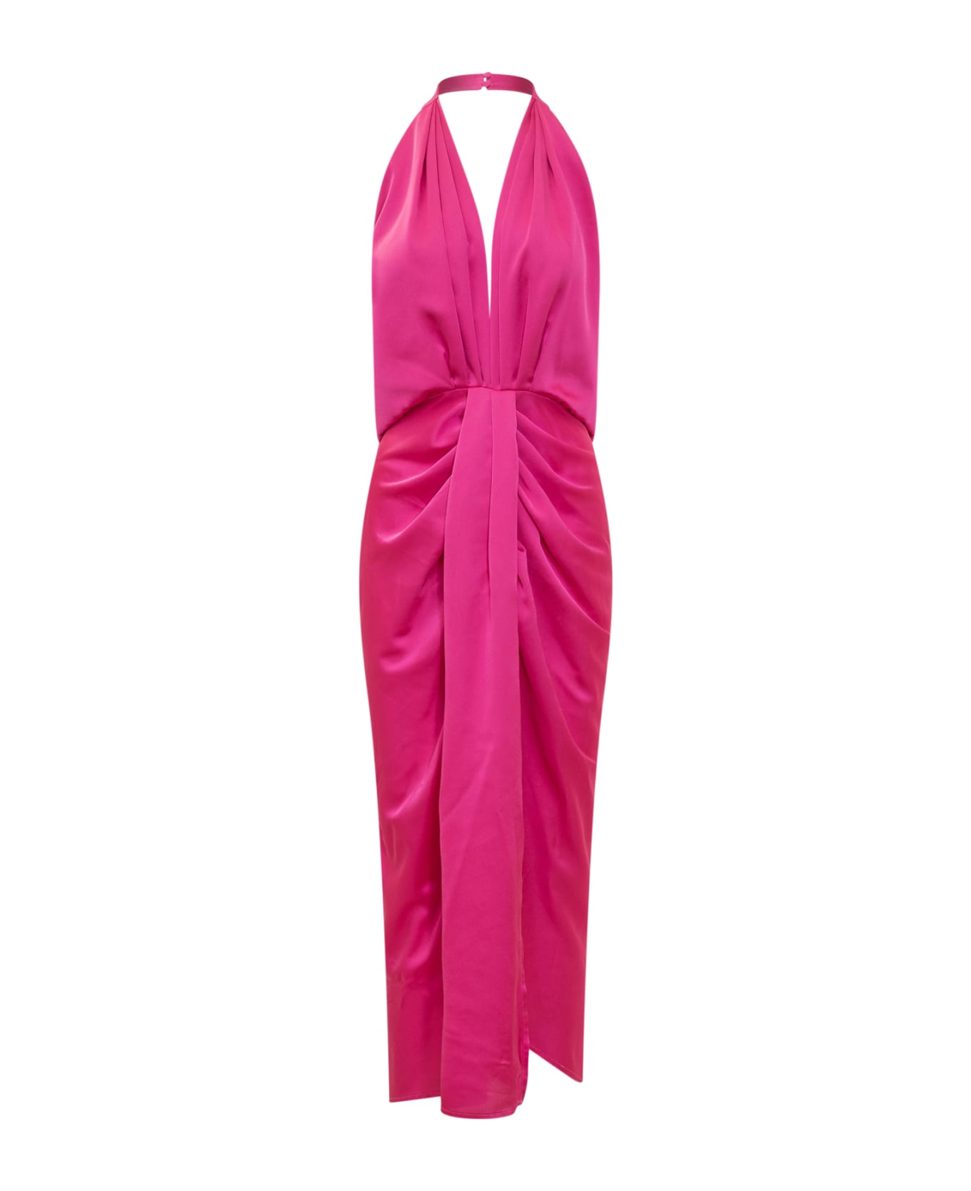 Midi dress. V-neck. Cut out at the back. Slit at the front. Satin.