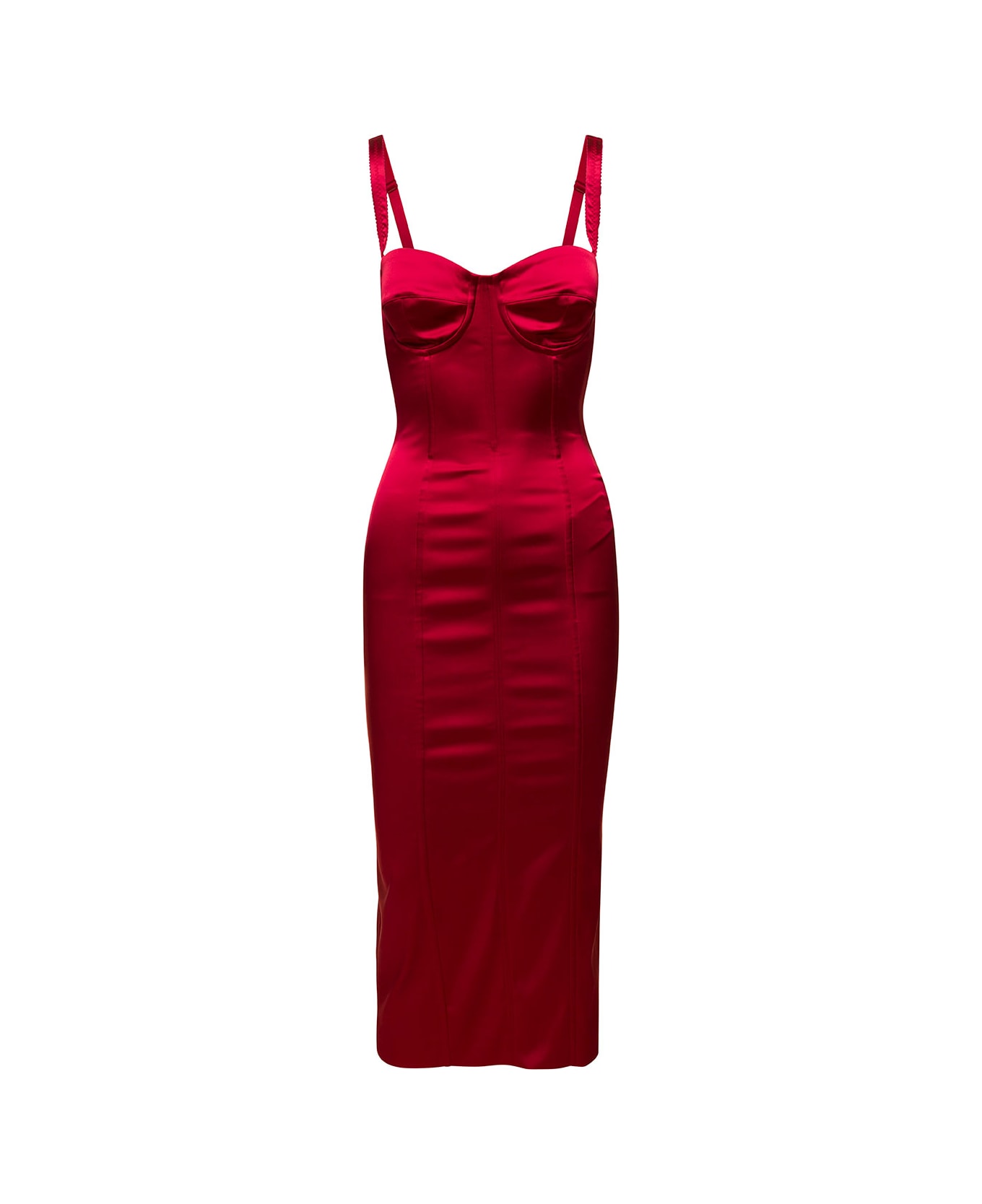 Longuette Red Dress Wuth Bustier Details In Satin Woman