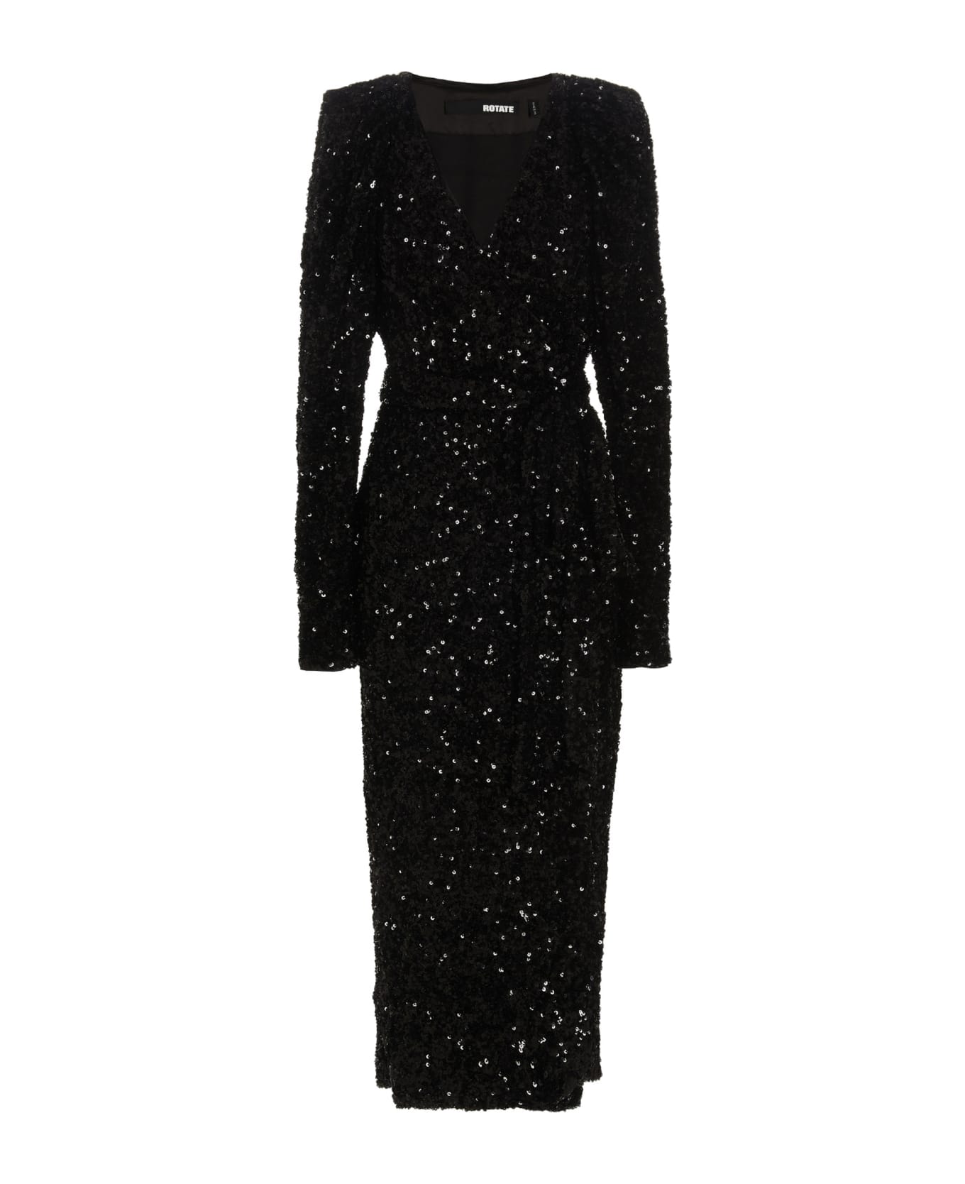 Maxi dress with all-over sequin appliqué, wrap tie closure, long sleeves and shoulder pads. Sequins sewn one by one. Any imperfections should not be considered defects. : This product is made with recycled polyester. in recycled polyester.