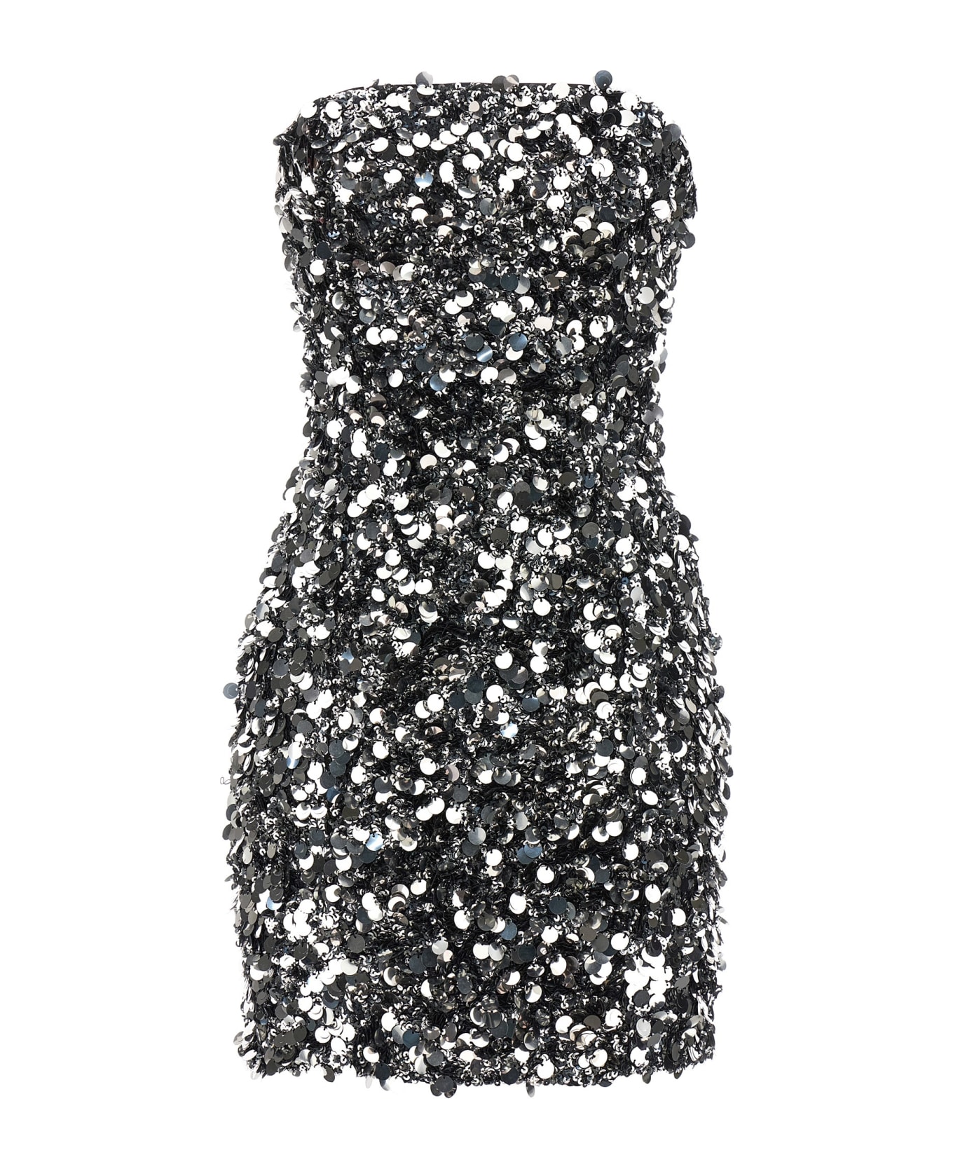 Strapless sequin mini dress.