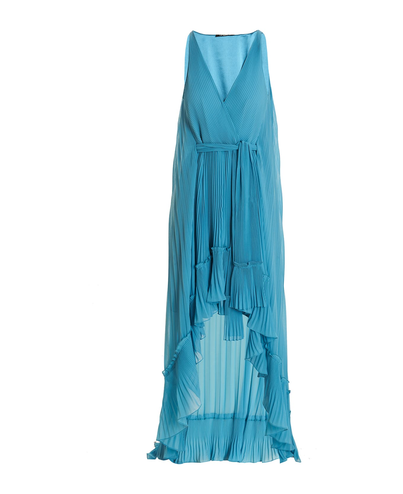 Sheridan' pleated chiffon crêpe dress with V-neck, belt at the waist and an asymmetric hem with rupches.
