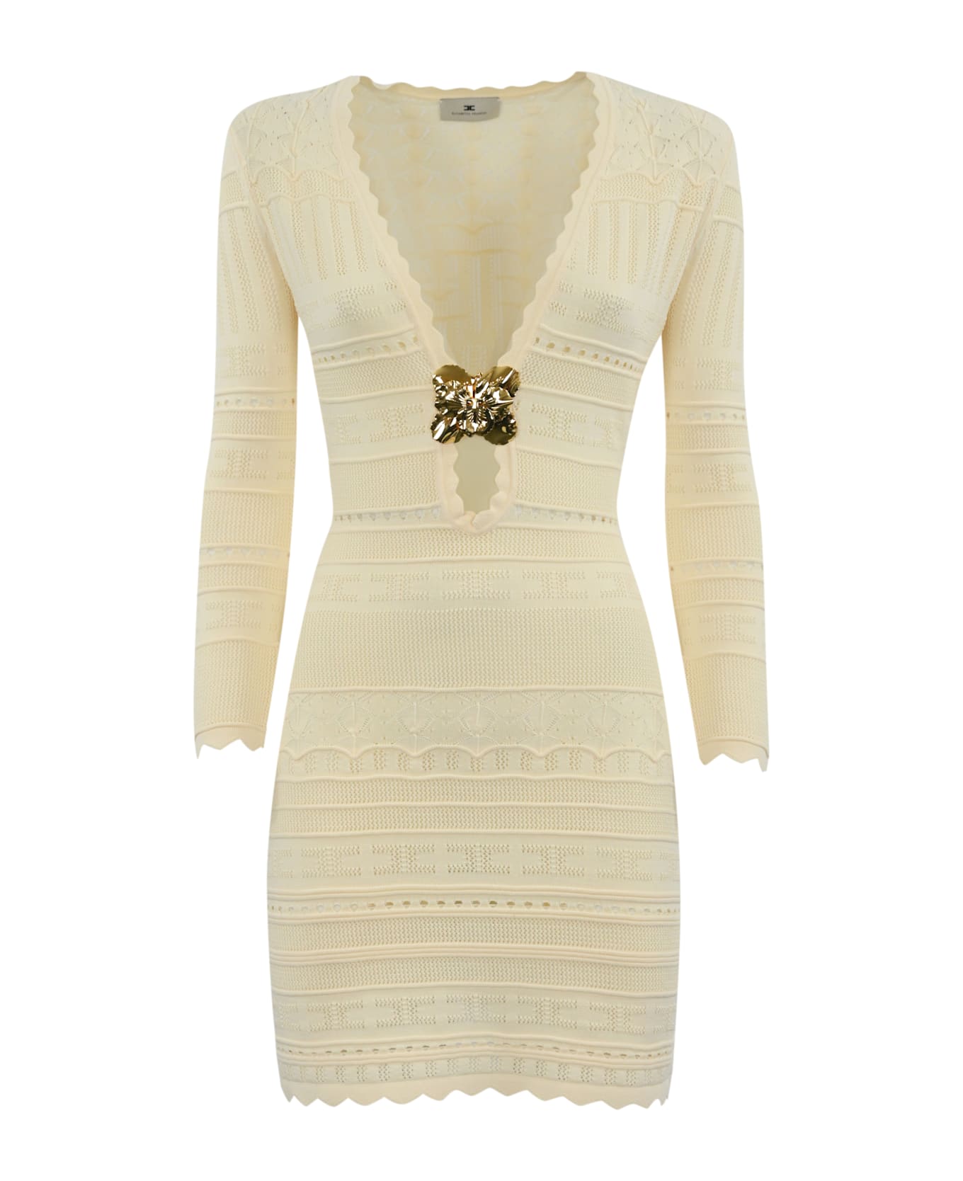 Short Dress In Perforated Viscose With Jewel Flower