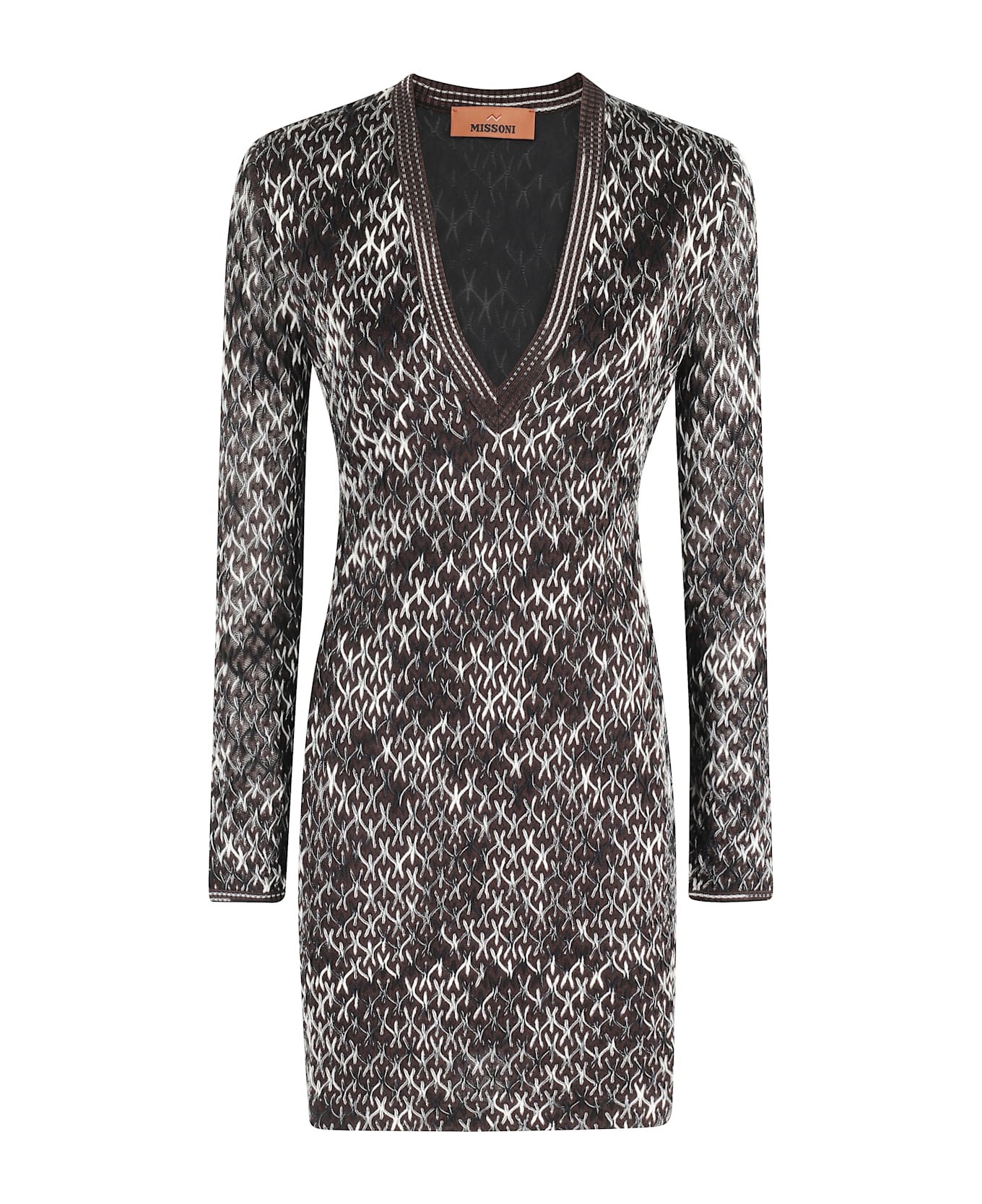 Mini dress -Missoni -Color dark brown -Long sleeve -V-neck -Zip side closure