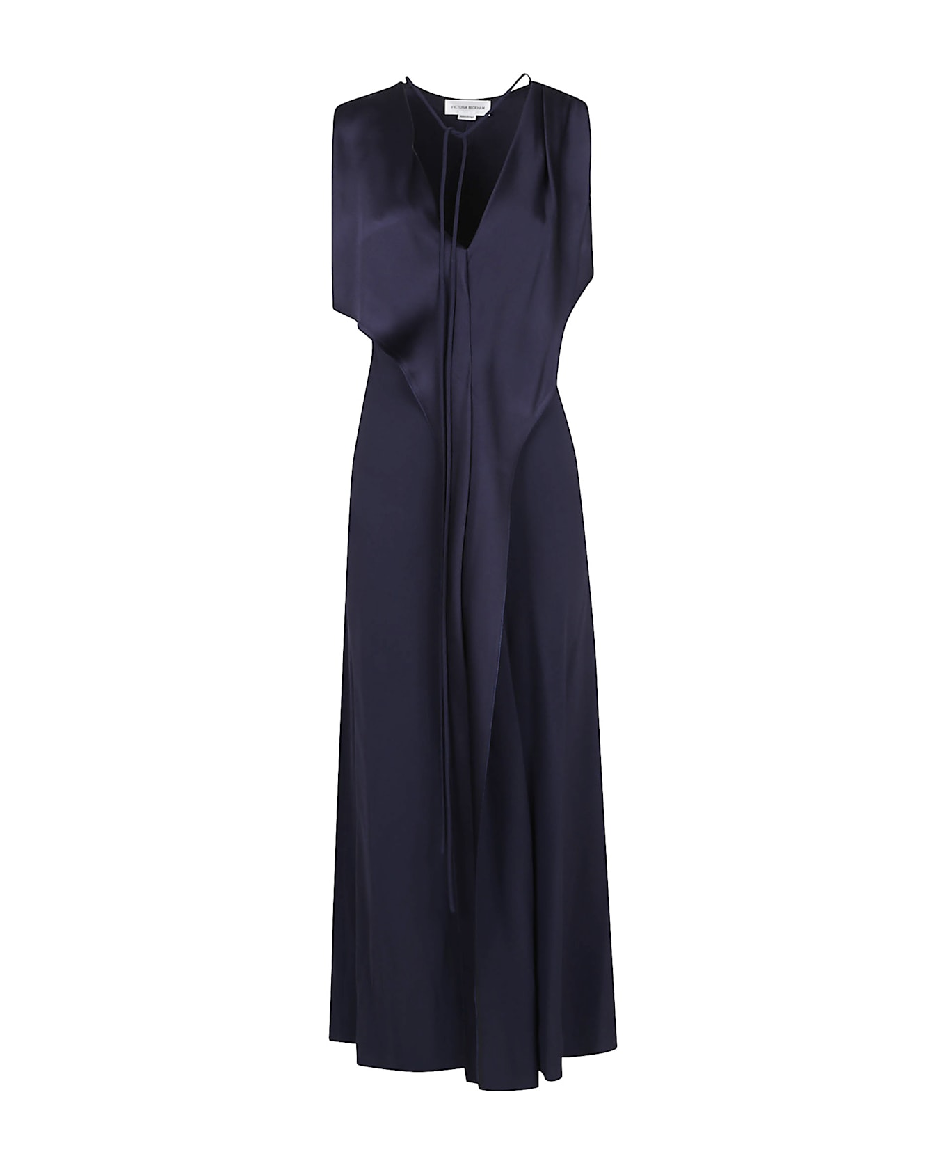 Dress by VICTORIA BECKHAM. V-neck; sleeveless; concealed side zip fastening. Features applique panels and tie neck.