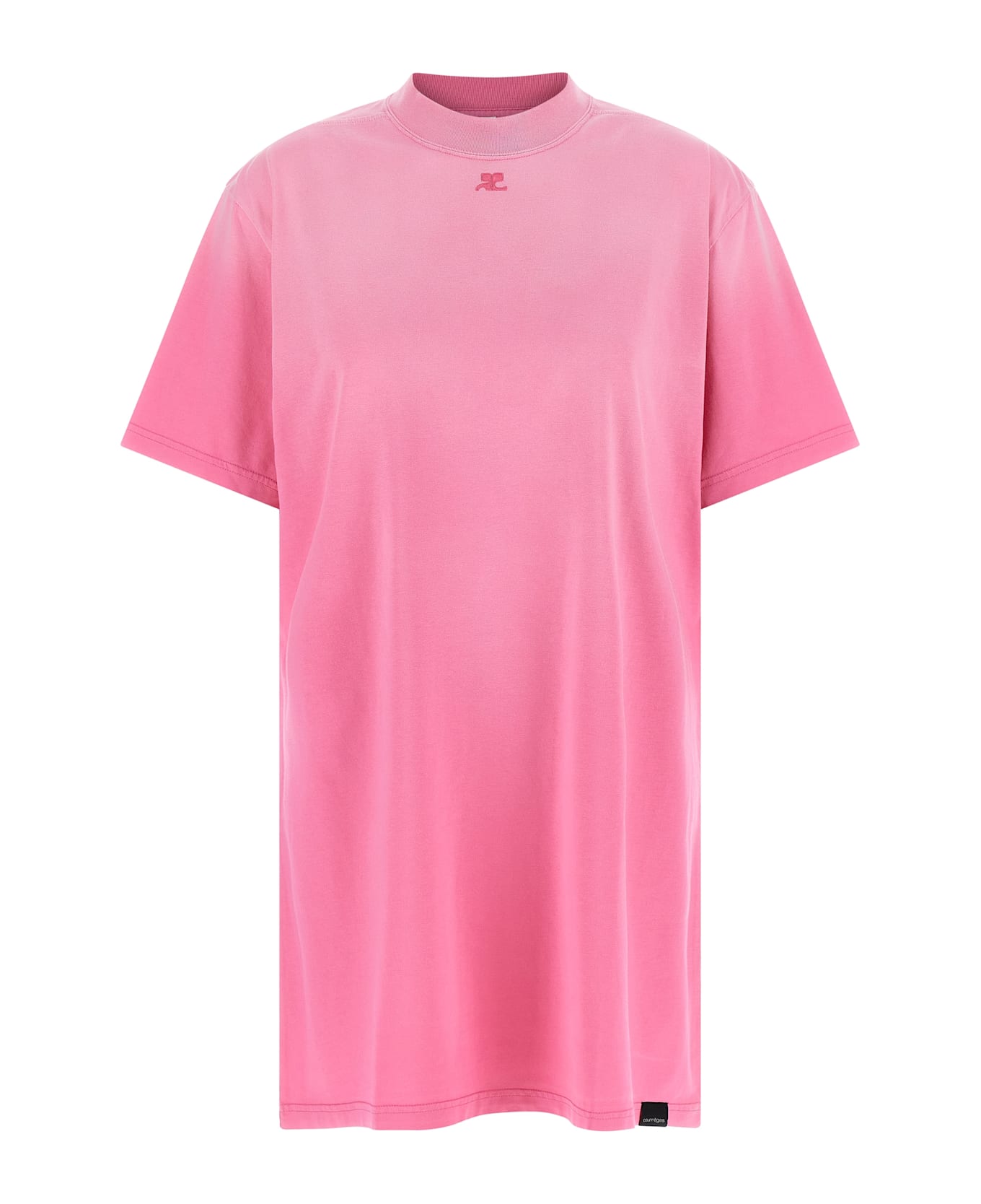 'Solarized T-shirt' mini dress in solarized cotton jersey, t-shirt model, tone-on-tone embroidered logo on the front and back, crew neck, short sleeves with dropped shoulders.