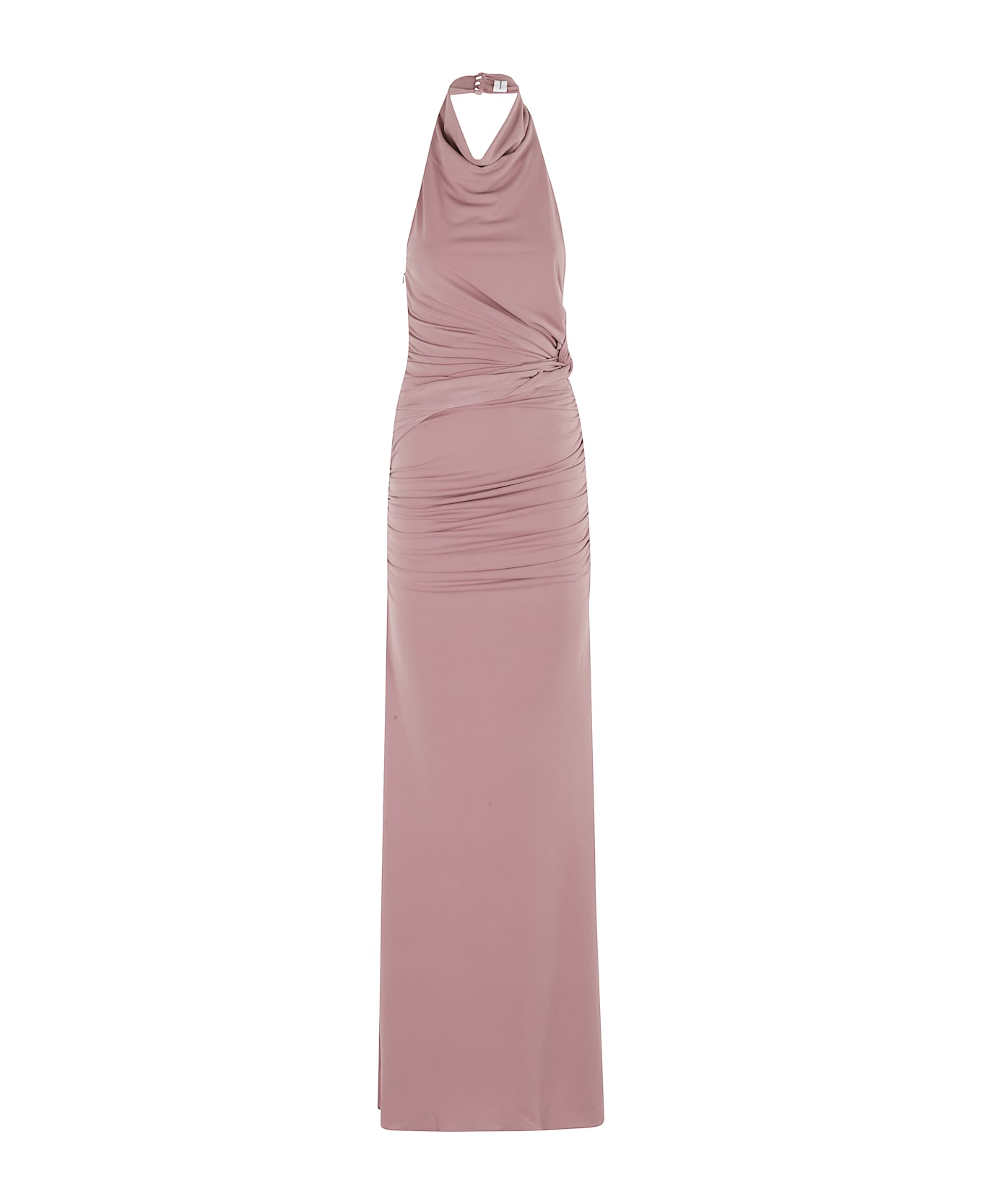 Stella Maxi dress - The Andamane - Pink color - Draped jersey fabric - American style button back neckline - Back neckline - Side zipper closure