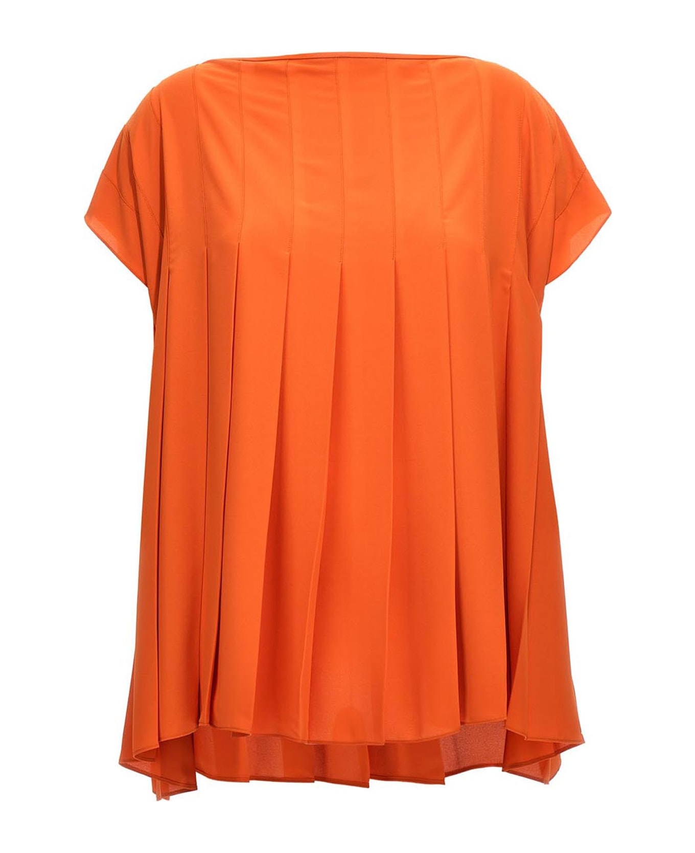 'Cashmere' pleated silk dress with round neckline and short sleeves.