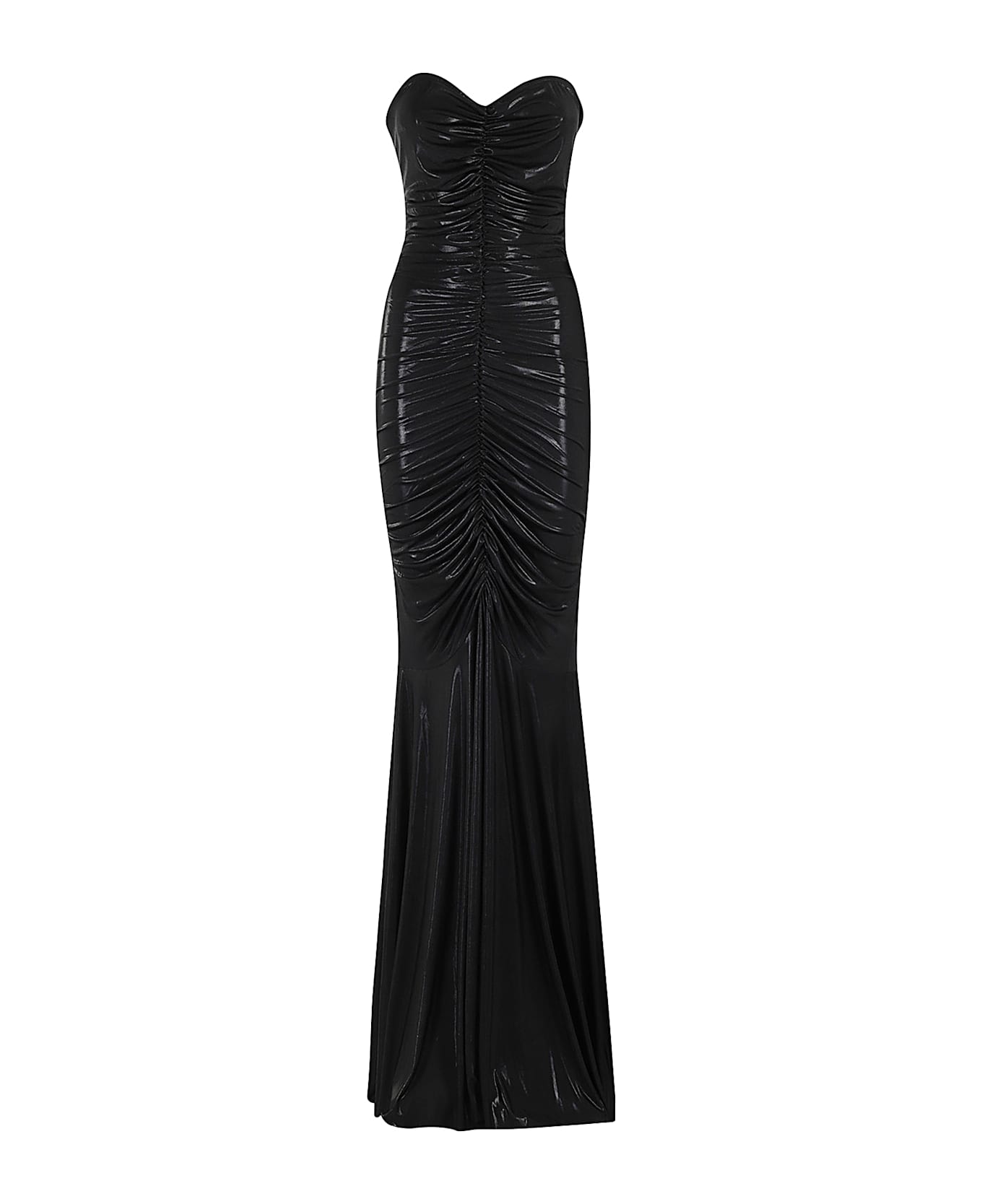 Strapless Shirred Dress - Norma Kamali - Black color - Fluid fabric with lurex finish - Sweetheart neckline - Strapless - Draped design - Mermaid skirt - Fitted fit