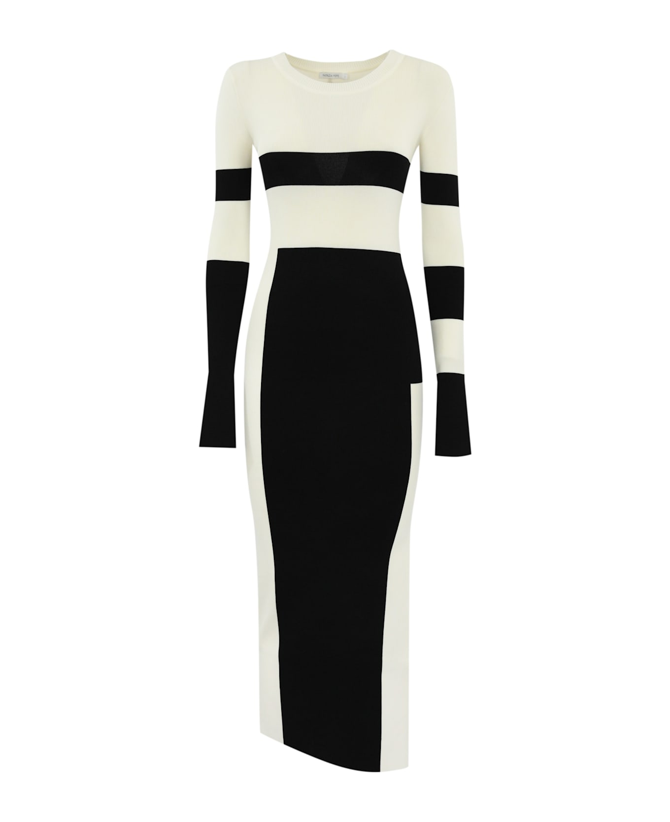 women's midi dress: viscose blend knit smooth knit crew neck long sleeves cuffs with slits side slit striped design slim fit composition: 58% viscose, 42% polyamide