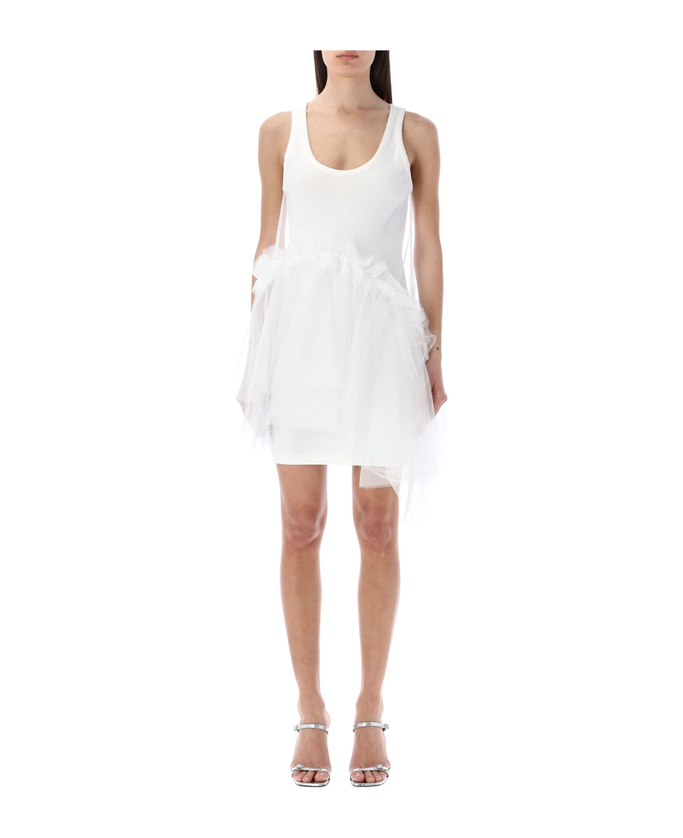 Cotton Blend Tank Top Mini Dress By Msgm. Featuring: Scoop Neck Ribbed Design Layered Asymmetric Tulle Panels Tonal Msgm Logo Embroidery At Back The Model Is 1,72 M Tall And She's Wearing Size S