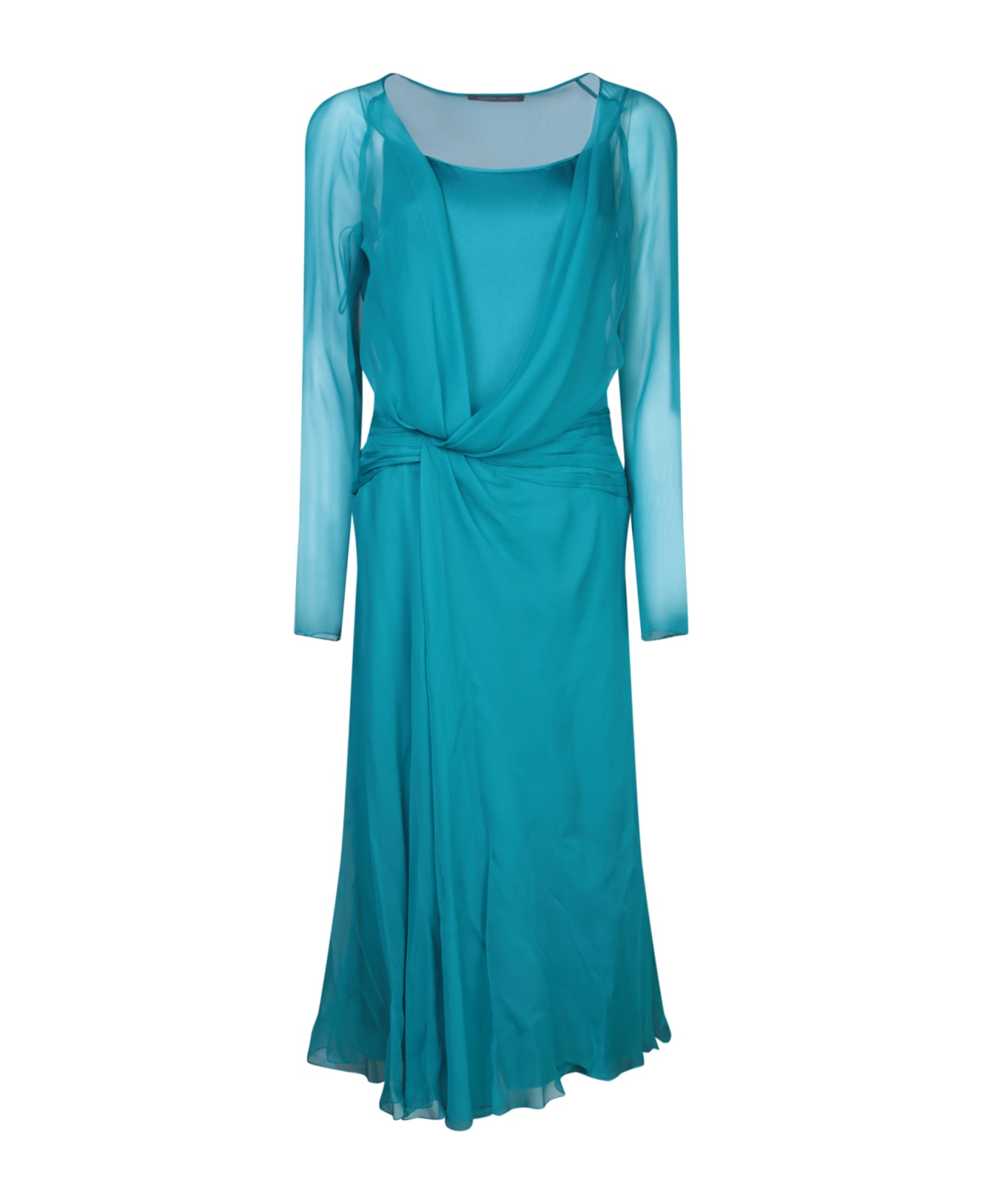 Teal Blue Silk Midi Dress