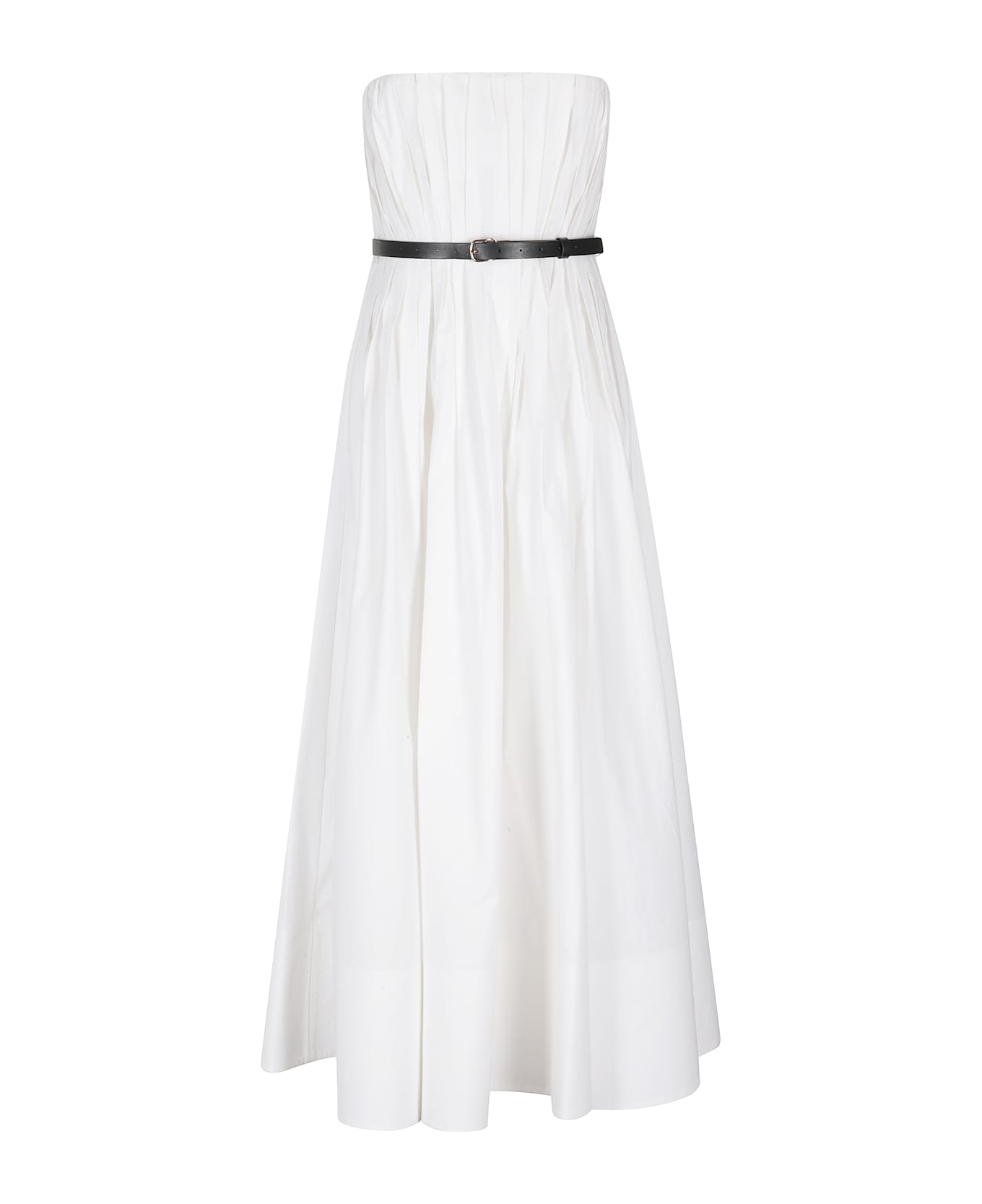 Thalia dress - Simkhai - white color - straight neckline - structured bodice - wide skirt - zipper closure - waist belt - ankle length