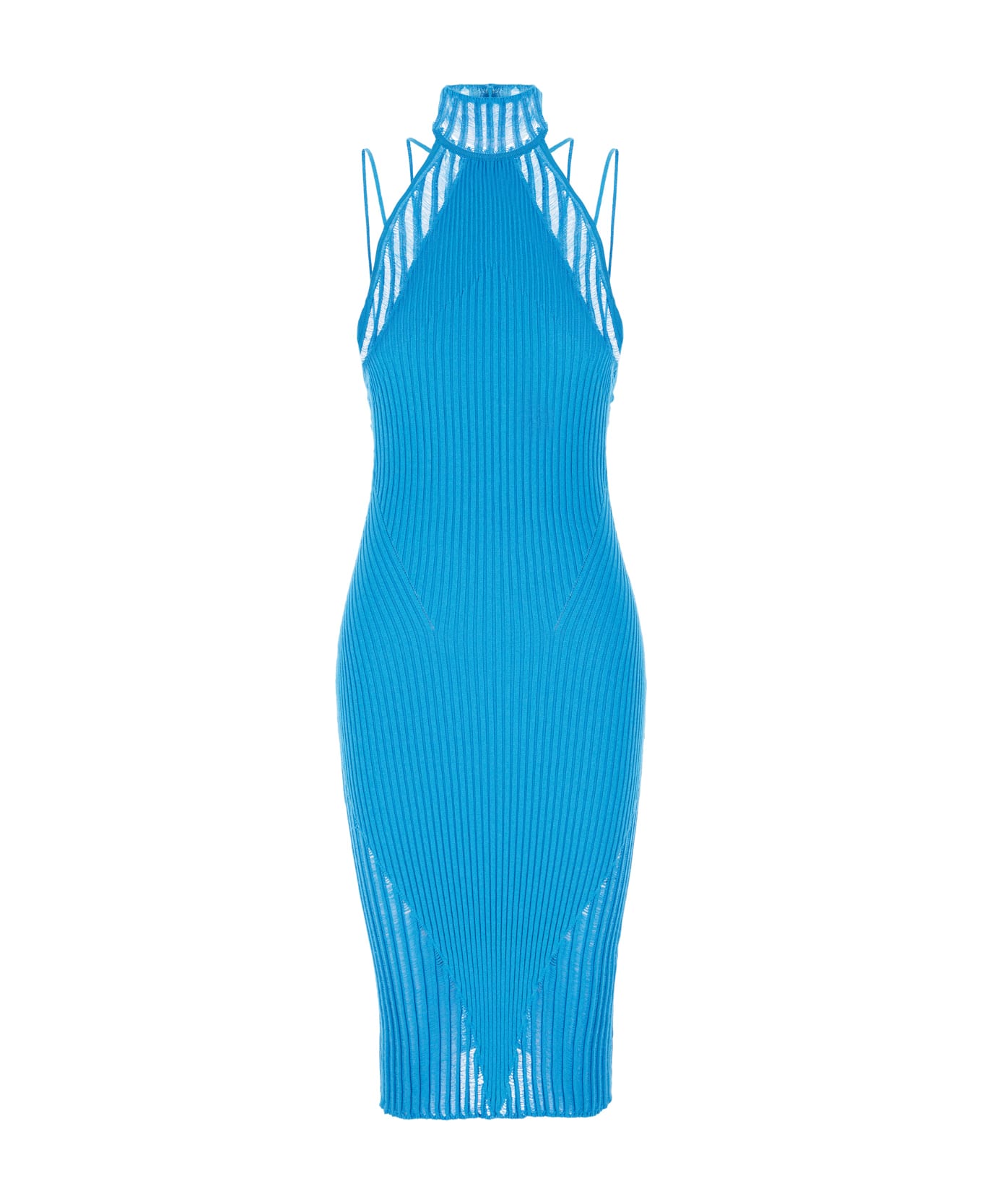 Mini dress realized in ribbed stretch viscose blend enriched by semi-transparent insert on the hemline. -Crew-neck -Concealed button closure at the back -Backless -Laces to tie at the back